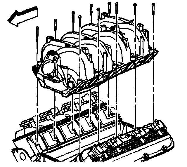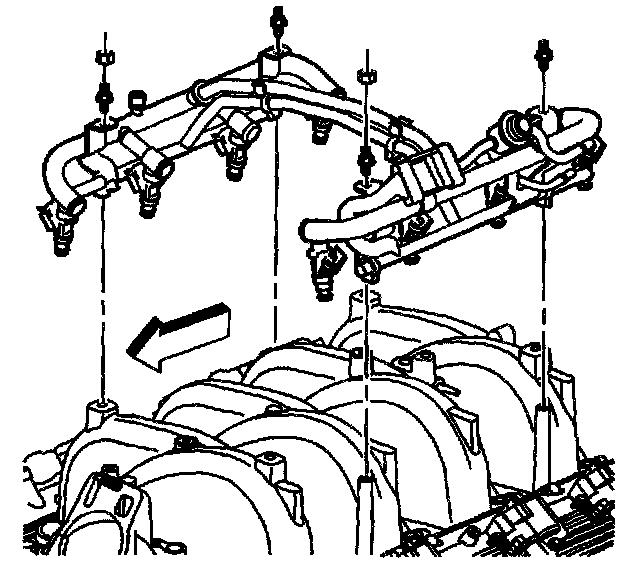 Removal ProcedureImportant: The intake manifold, throttle body, fuel rail, and injectors may be removed as an assembly. If not servicing the individual components, remove the manifold as a complete assembly.
