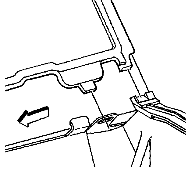 23. Open the passenger front harness clip. Remove the harness from the clip.