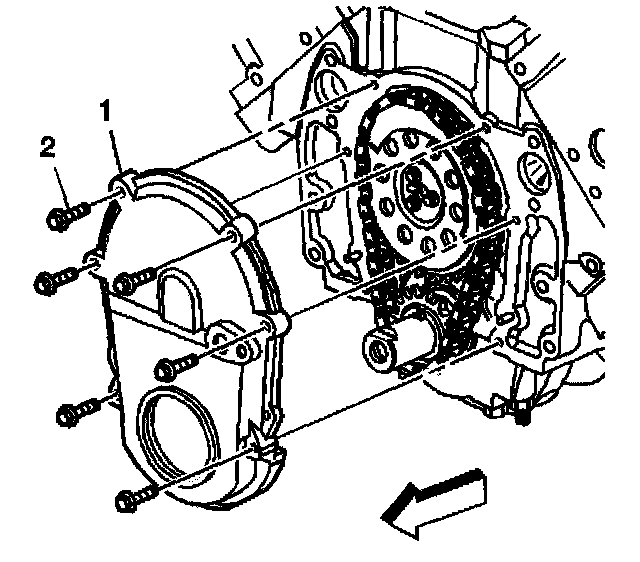 5. Remove the engine front cover (1).