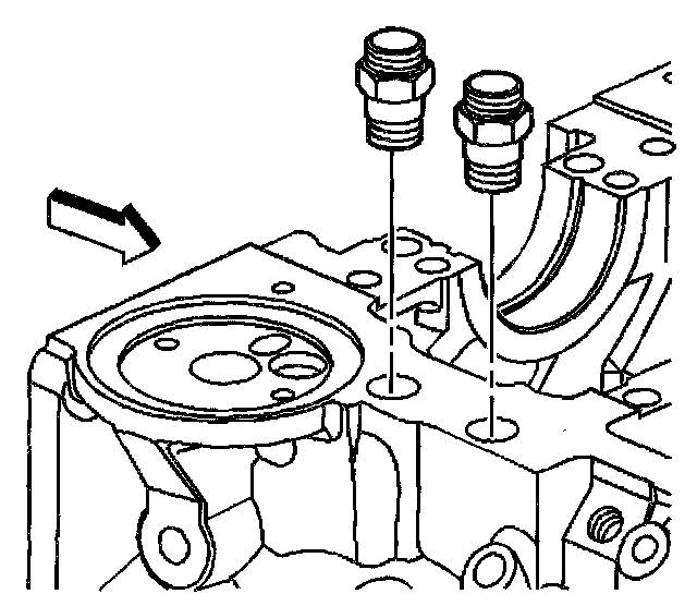 7. Remove the engine block oil cooler hose fittings.