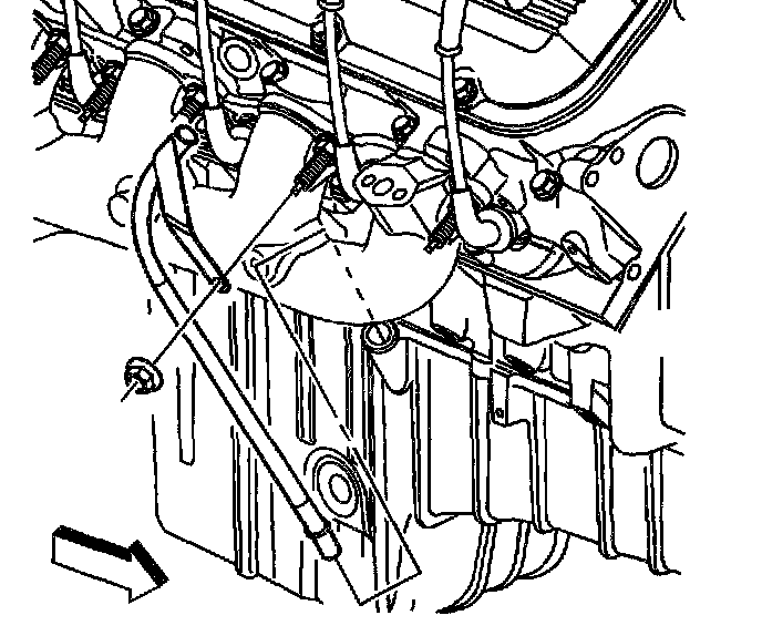 Oil Level Indicator and Tube Removal (G)1. Remove the oil level indicator tube bracket nut from the exhaust manifold stud.