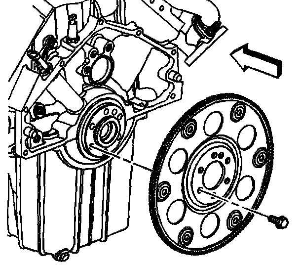 Engine Flywheel Installation (C/K/G/C350OHD with AT)Important: Make sure the flywheel is installed correctly. Engine Side is stamped on the flywheel to assist with installation.