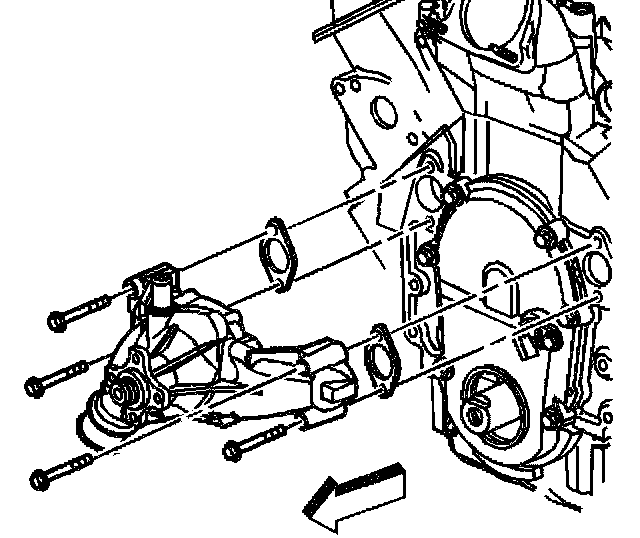 1. Place NEW water pump gaskets and the water pump into position.