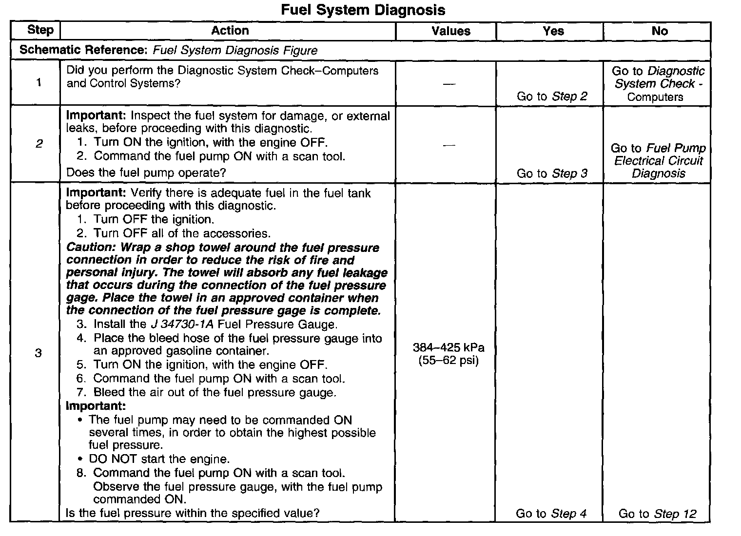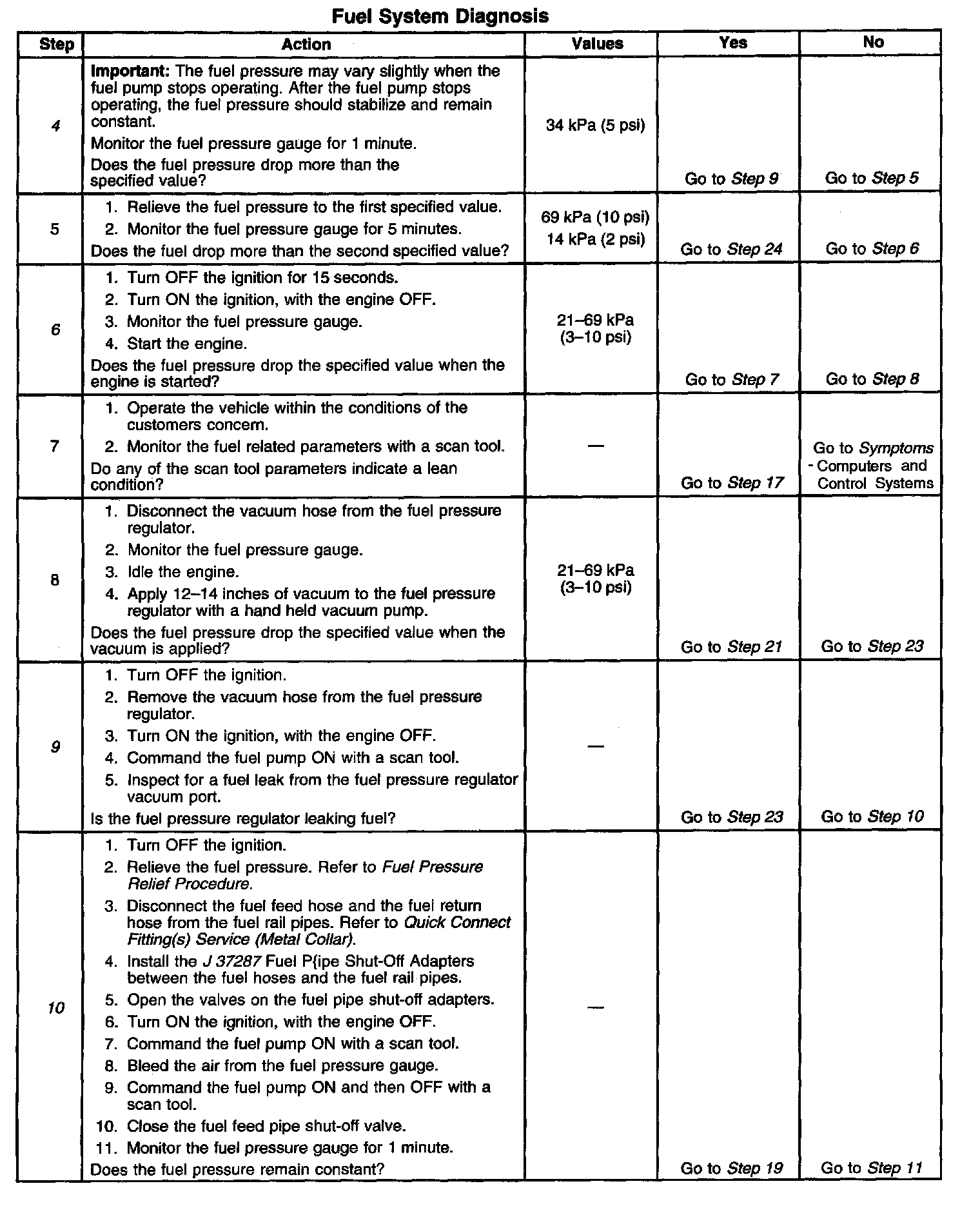 11. This step tests for a leaking fuel injector, or fuel pressure regulator. If the fuel pressure remains constant during this test, the fuel injectors are not leaking fuel.