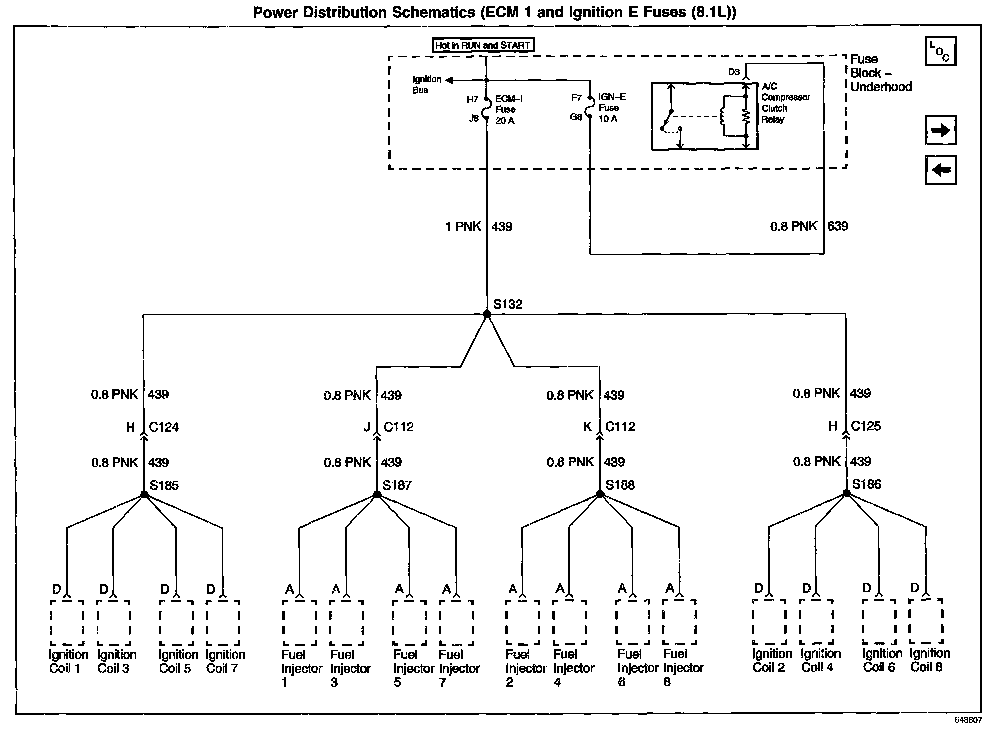 Power Distribution Schematics: ECM 1 And Ignition E Fuses (8.1L):