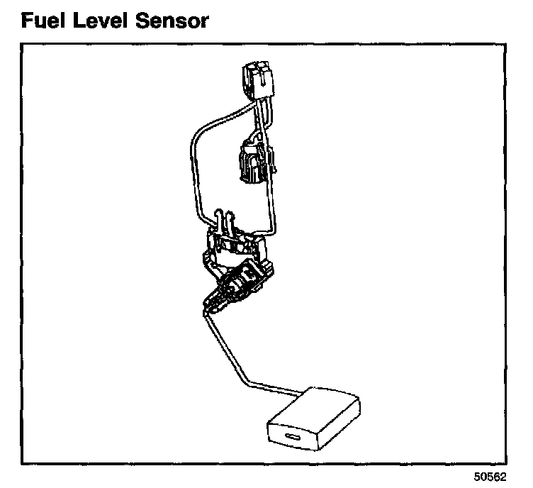 The fuel level sensor consists of a float, a wire float arm, and a ceramic resistor card. The position of the float arm indicates the fuel level. The fuel level sensor contains a variable resistor which changes resistance in correspondence with the amount of fuel in the fuel tank. The PCM sends the fuel level information via the class II circuit to the Instrument Panel (IP) cluster. This information is used for the IP fuel gauge and the low fuel warning indicator, if applicable. The PCM also monitors the fuel level input for various diagnostics.