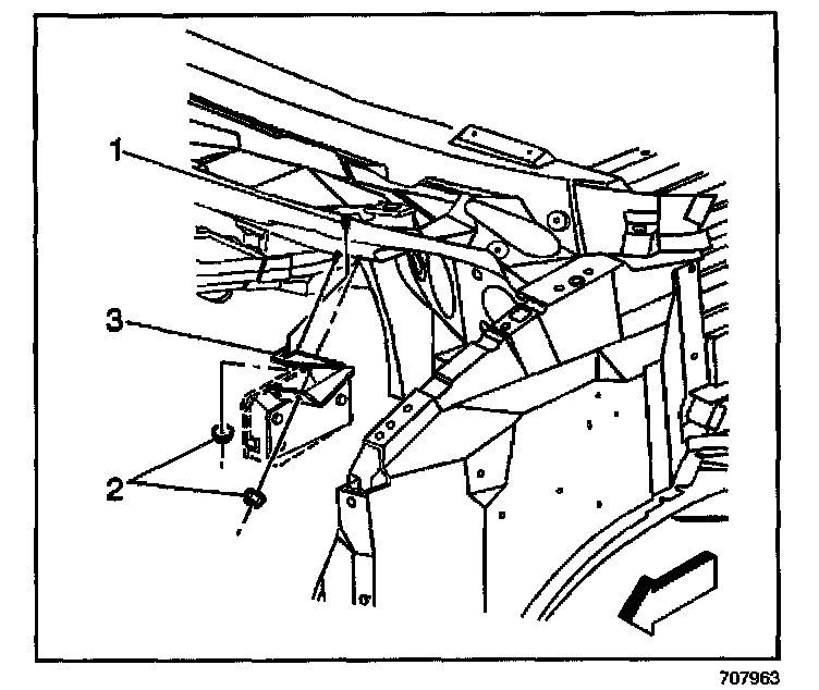 2. Install the TAC module (3) to the mounting studs (1) on the cowl.
