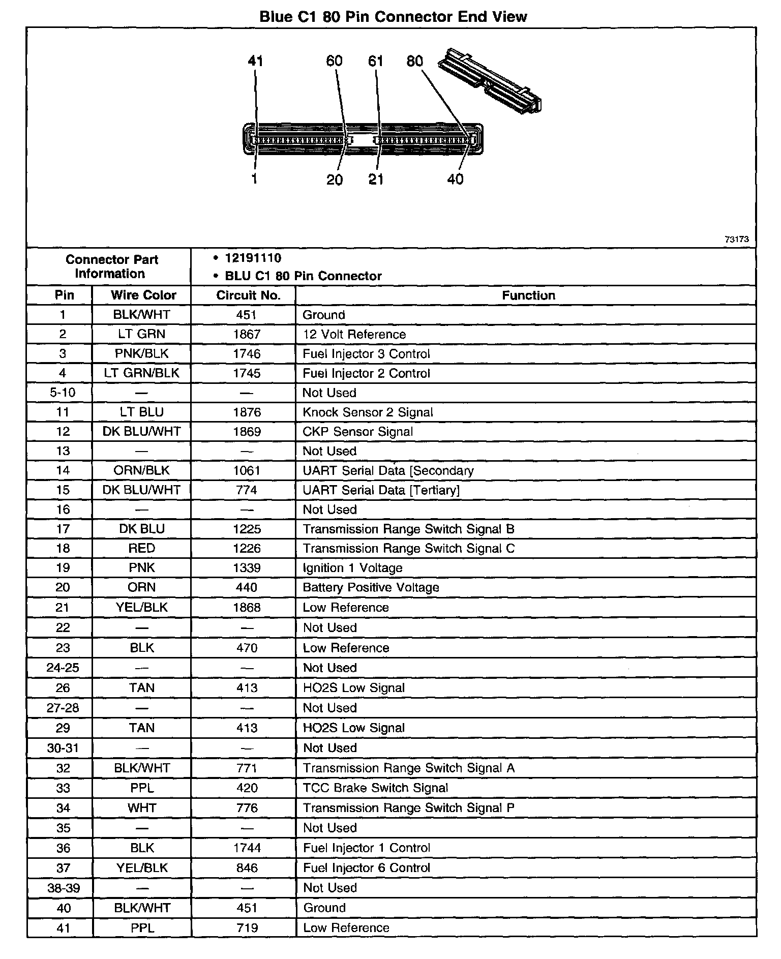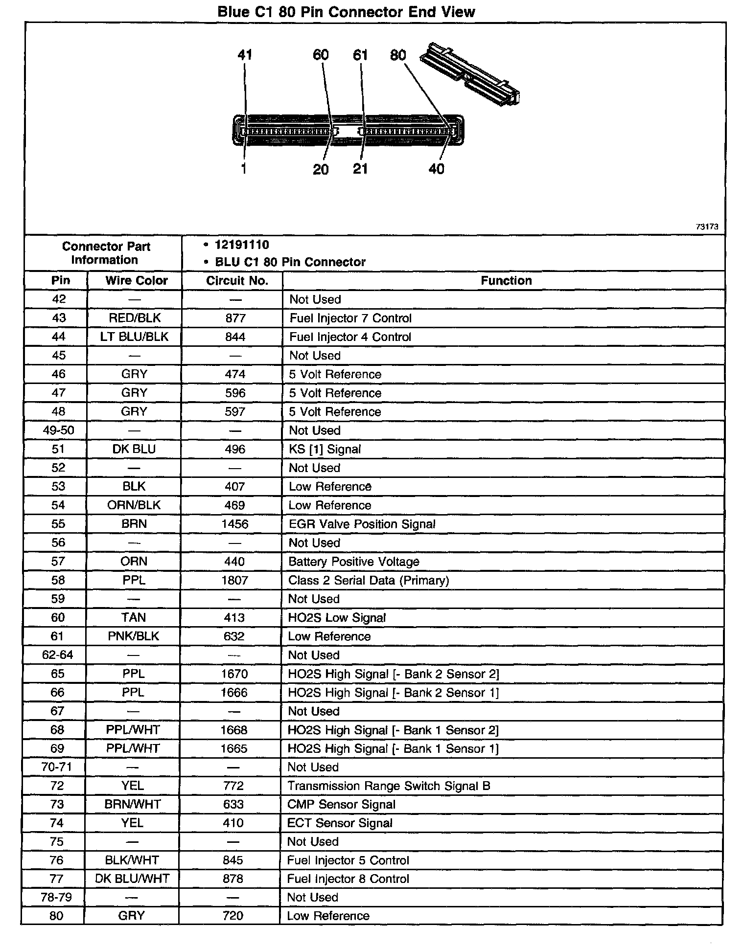 Blue C1 80 Pin Connector End View (Part 1 Of 2):
