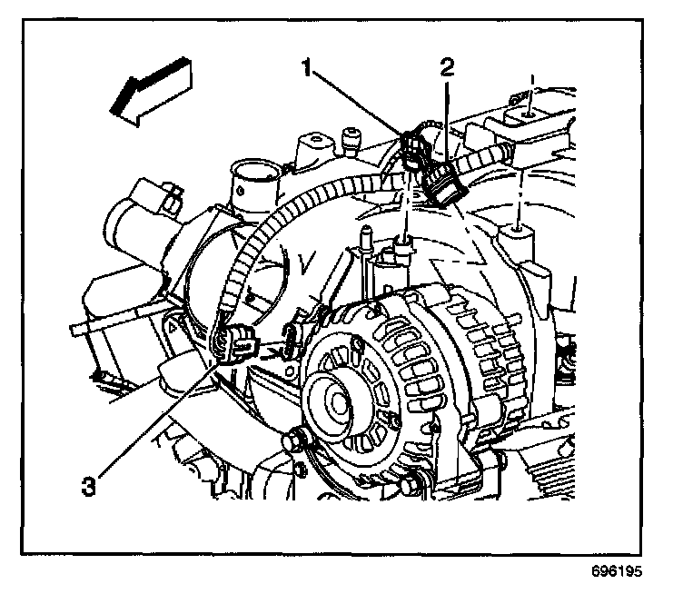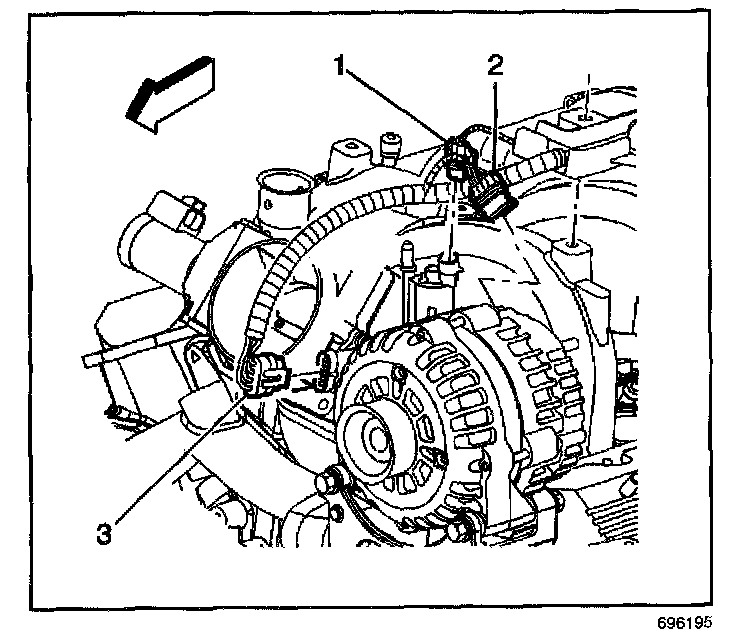 3. Disconnect the generator harness connector (2).