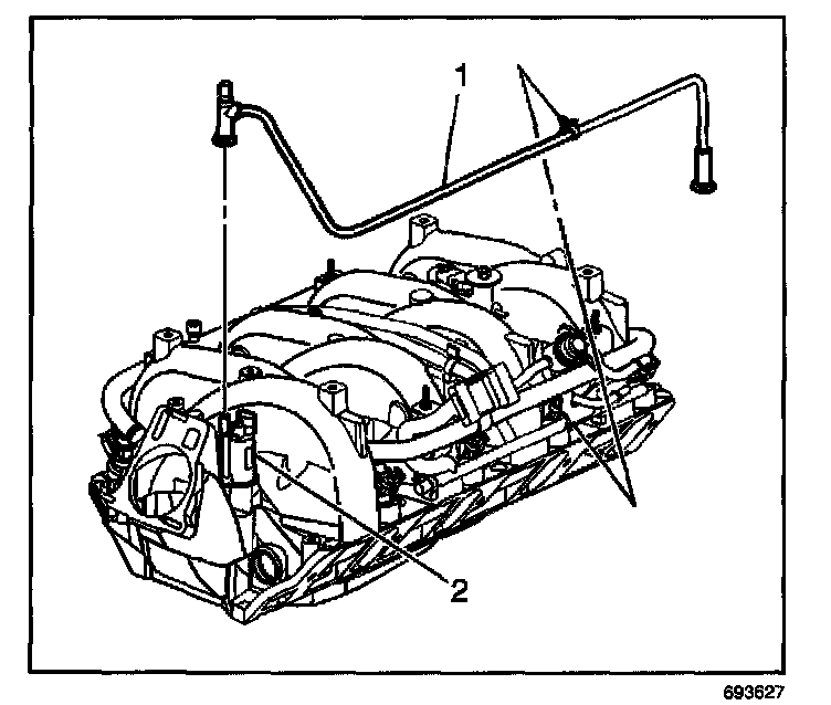 1. Position the EVAP engine purge pipe (1) to the engine.