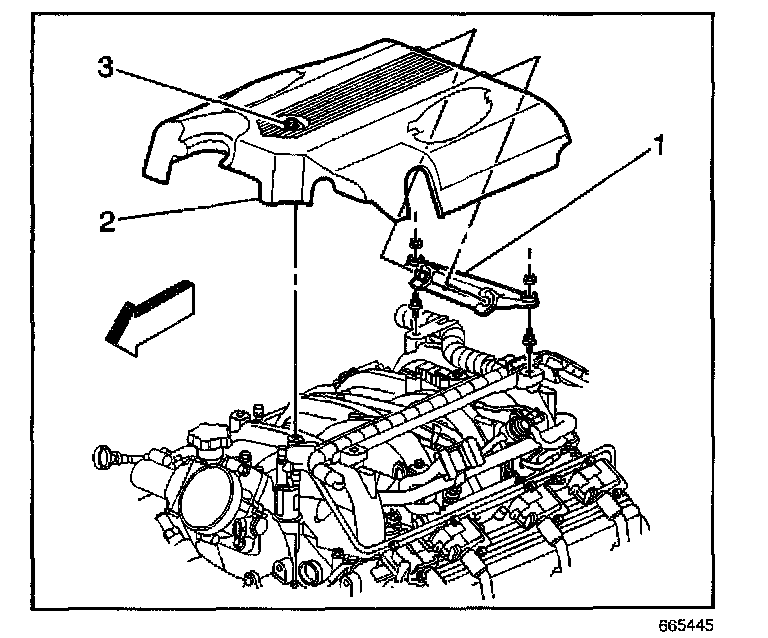 REMOVAL PROCEDURE1. Remove the fuel injection sight shield retaining bolt (3).