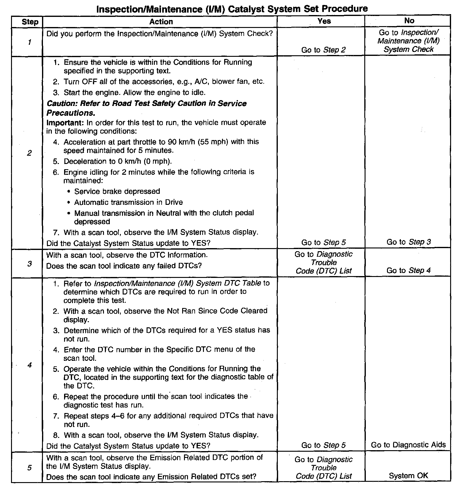 I/M Catalyst System Set Procedure