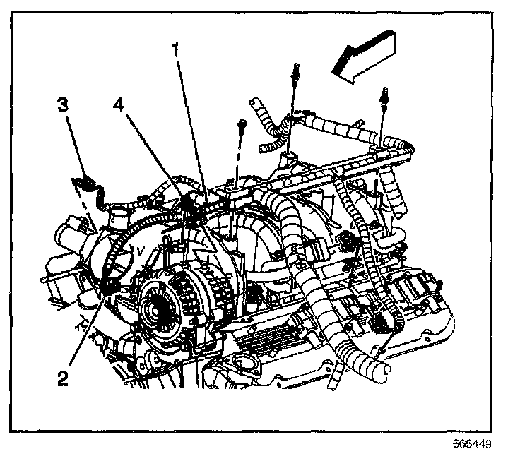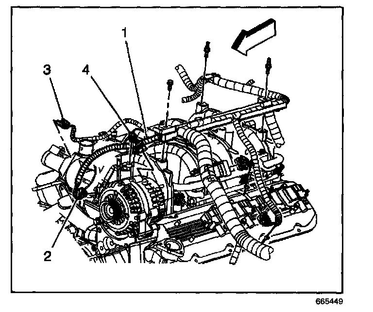 8. Remove the upper engine wire harness bracket studs and position the upper engine wire harness aside.
