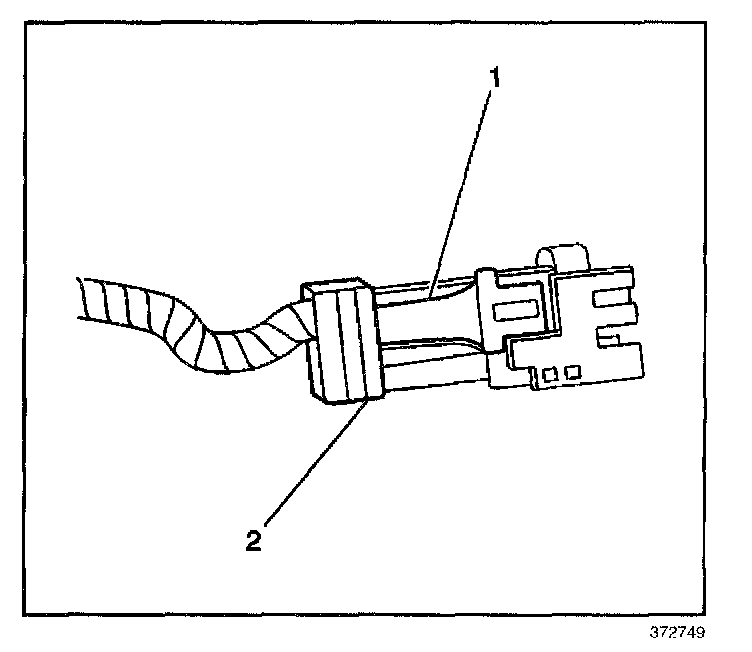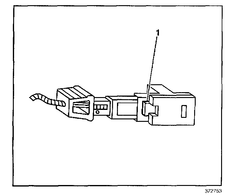 12. Push the tab (1) on the lower side of the injector connector in order to release the connector from the injector.