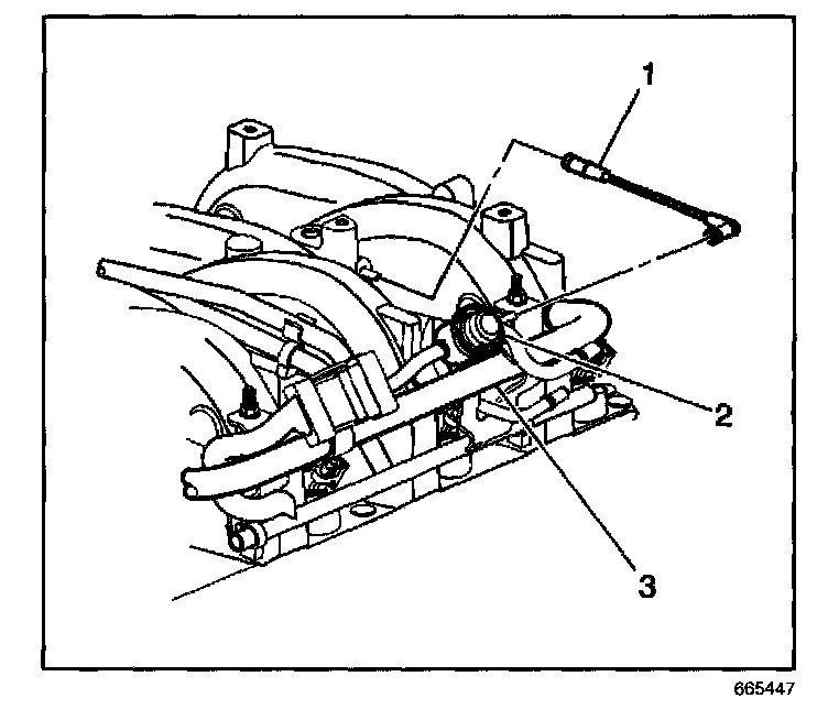 15. Disconnect the fuel pressure regulator vacuum line (1).