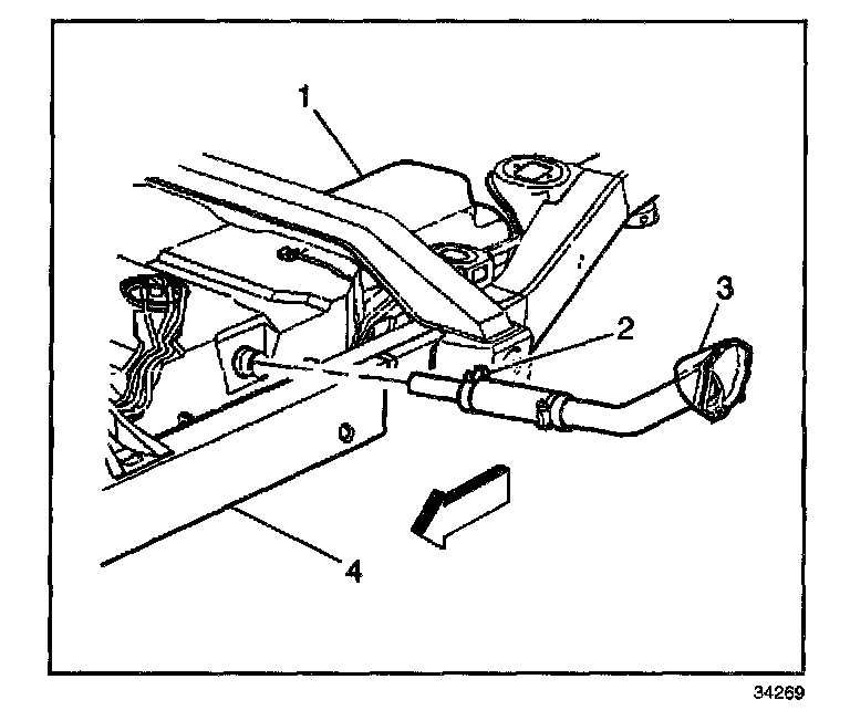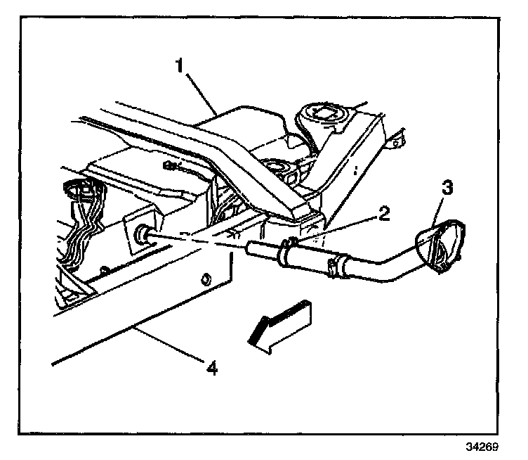 Tighten the fuel fill hose clamp (2) to 2.75 N.m (24 lb in).