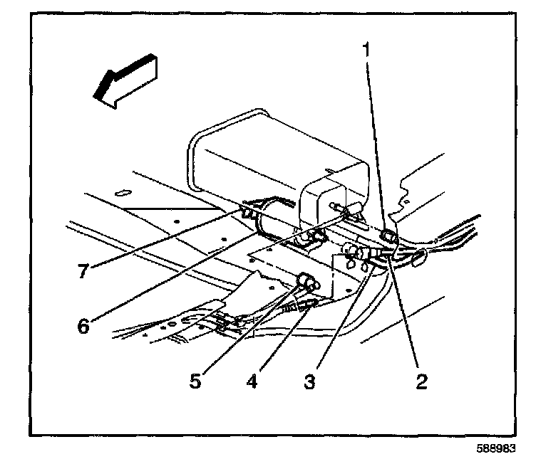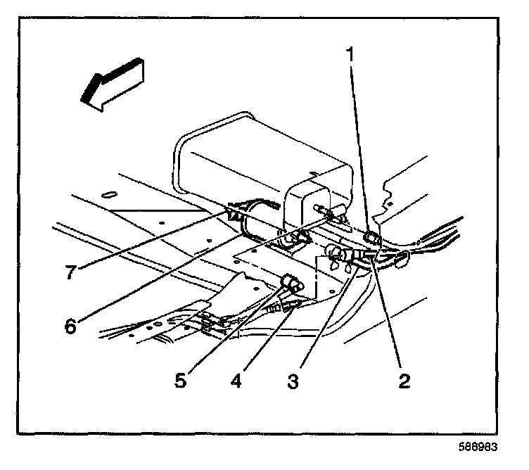 10. Disconnect the chassis EVAP purge pipe (5) at the EVAP canister.