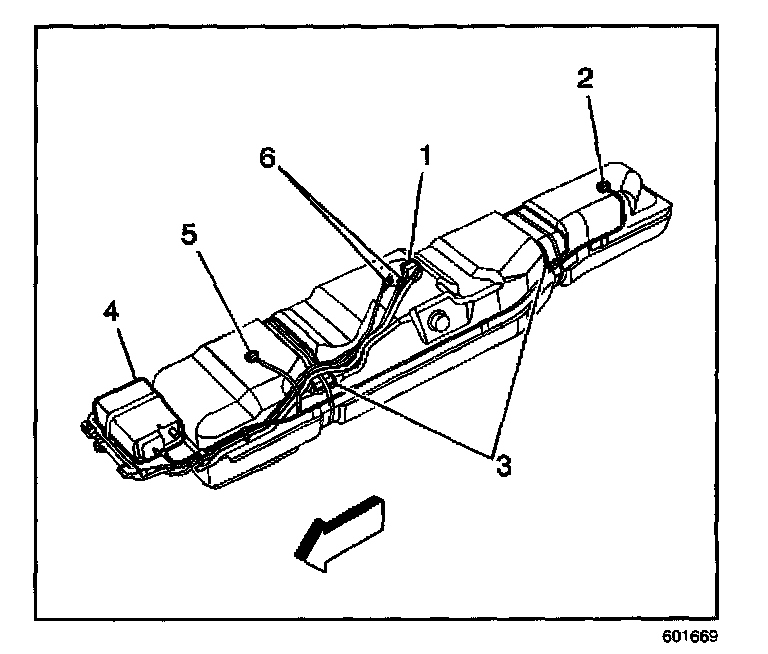 20. Remove the fuel sender assembly and the fuel pipes (6) from the fuel tank and the fuel filter. Refer to Fuel Sender Assembly Replacement