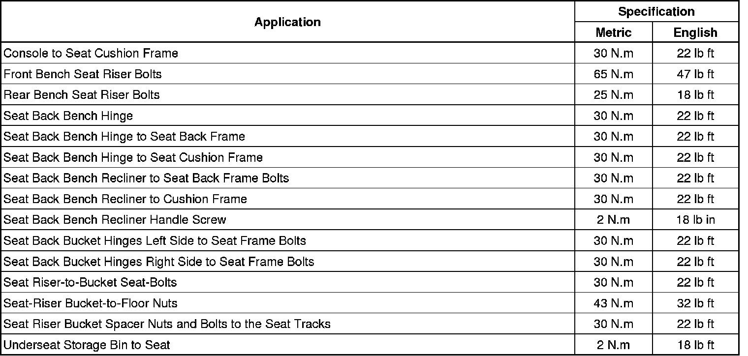 Seats - Fastener Tightening Specifications