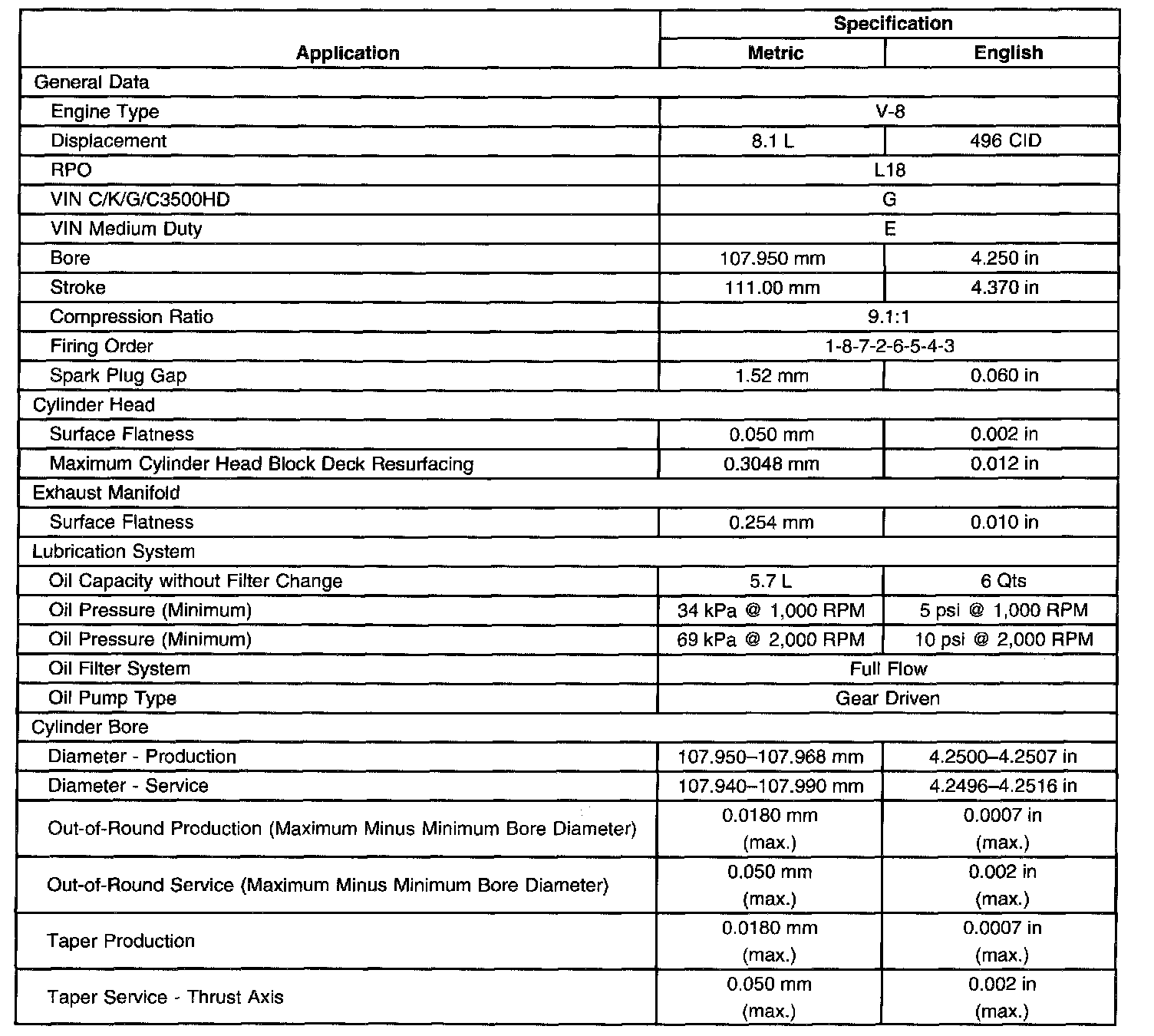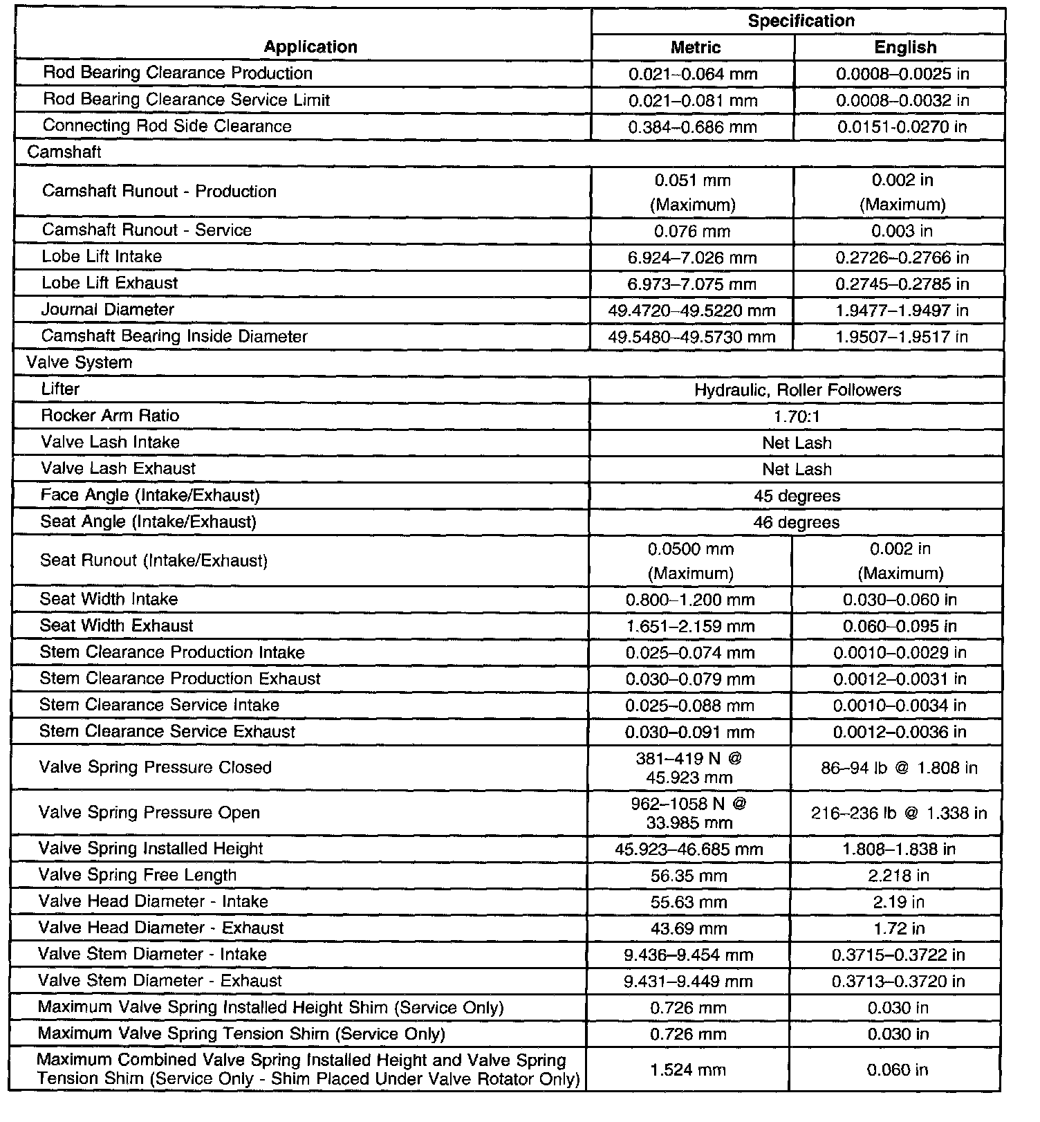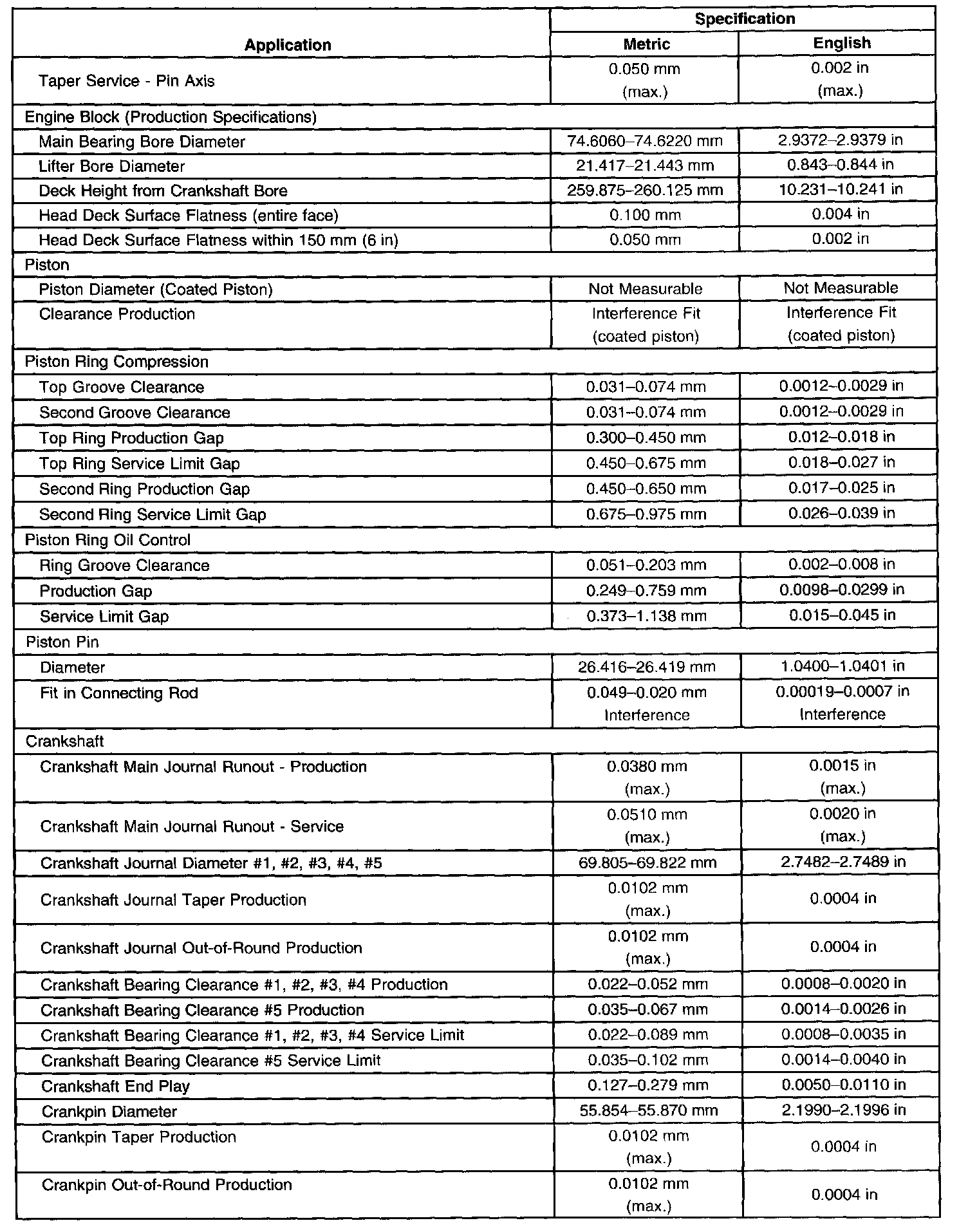 Engine Mechanical Specifications-Unit Repair