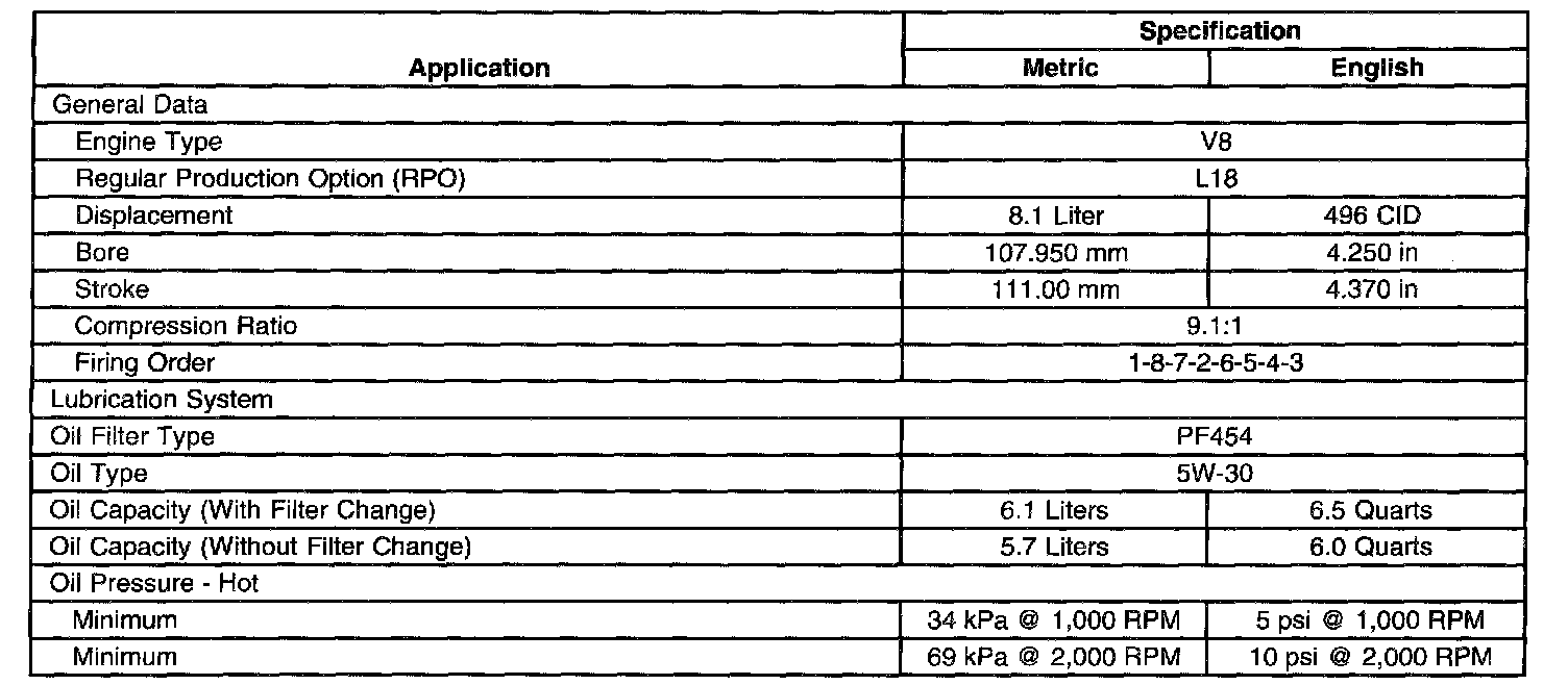 General Engine Data/Specifications