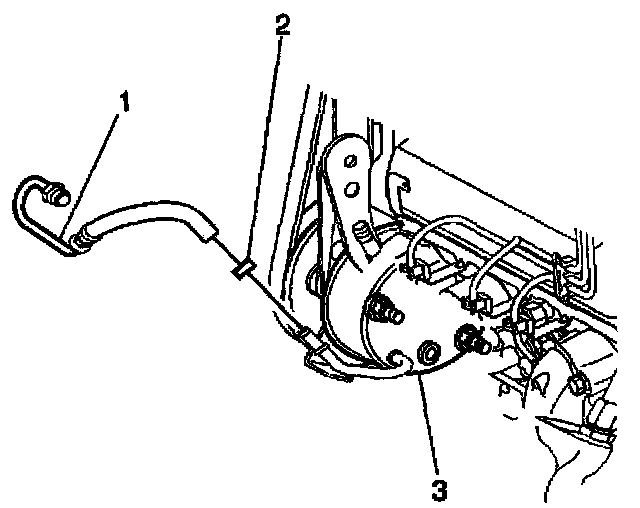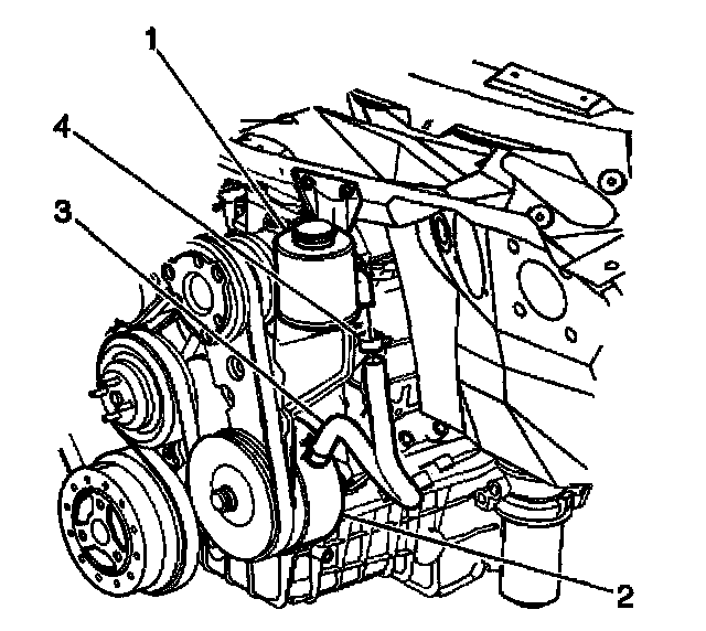 6. Disconnect the reservoir outlet hose (3) from the power steering pump.