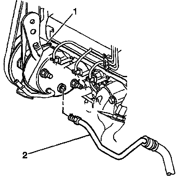 4. Disconnect the power steering pressure hoses (2) from the pump.