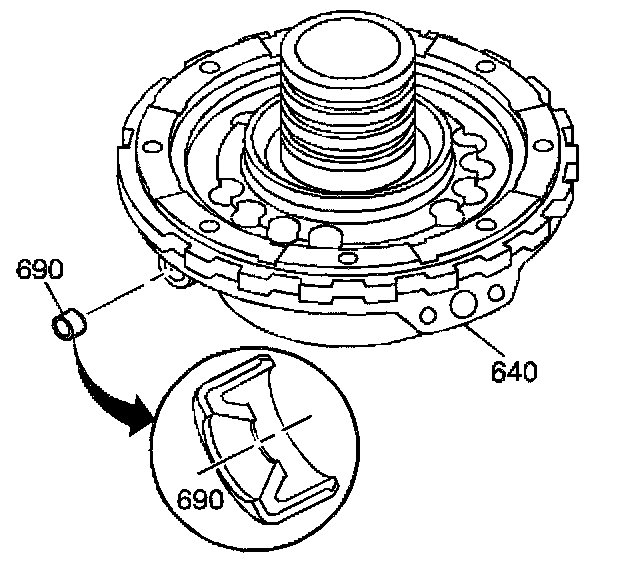 Important: Do not disassemble the roller clutch race from the center support (640). If a new center support (640) is required, the support will come with a roller clutch race already installed.