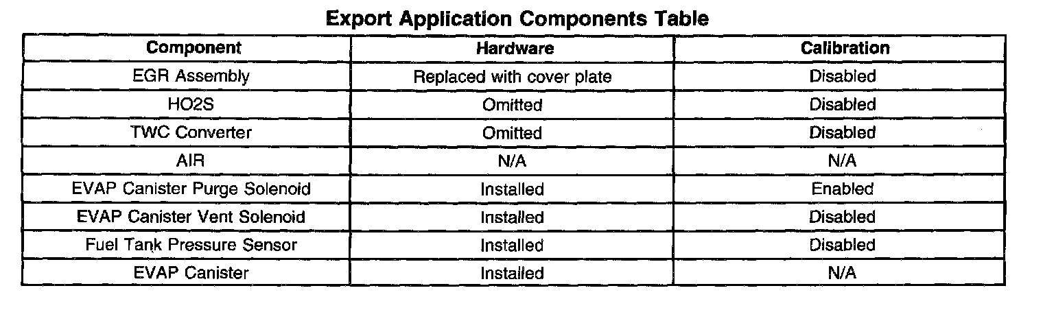 Export Application Components Table: