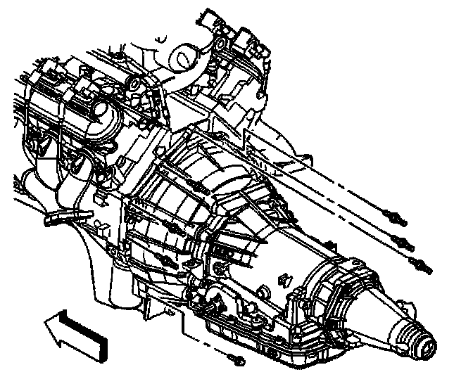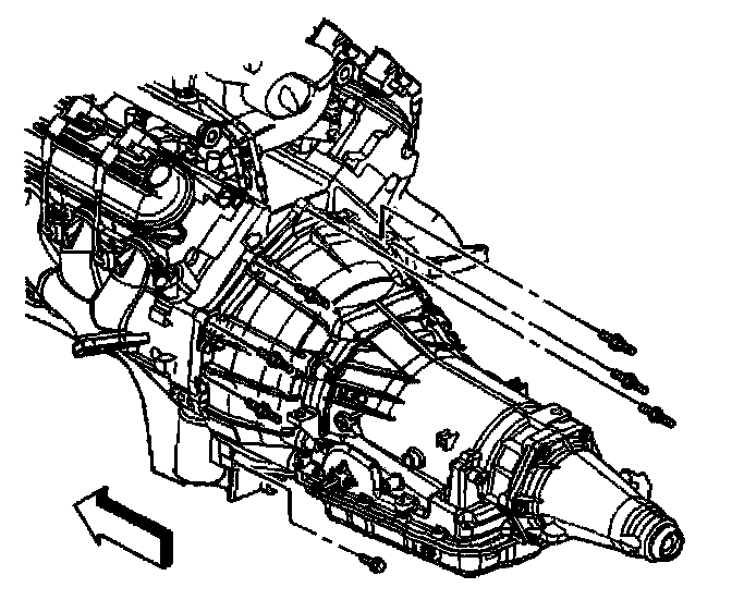 8. Position and install all vehicle harness wires, harness clips, tubes, brackets, and lines that were removed or moved prior to the transmission removal.