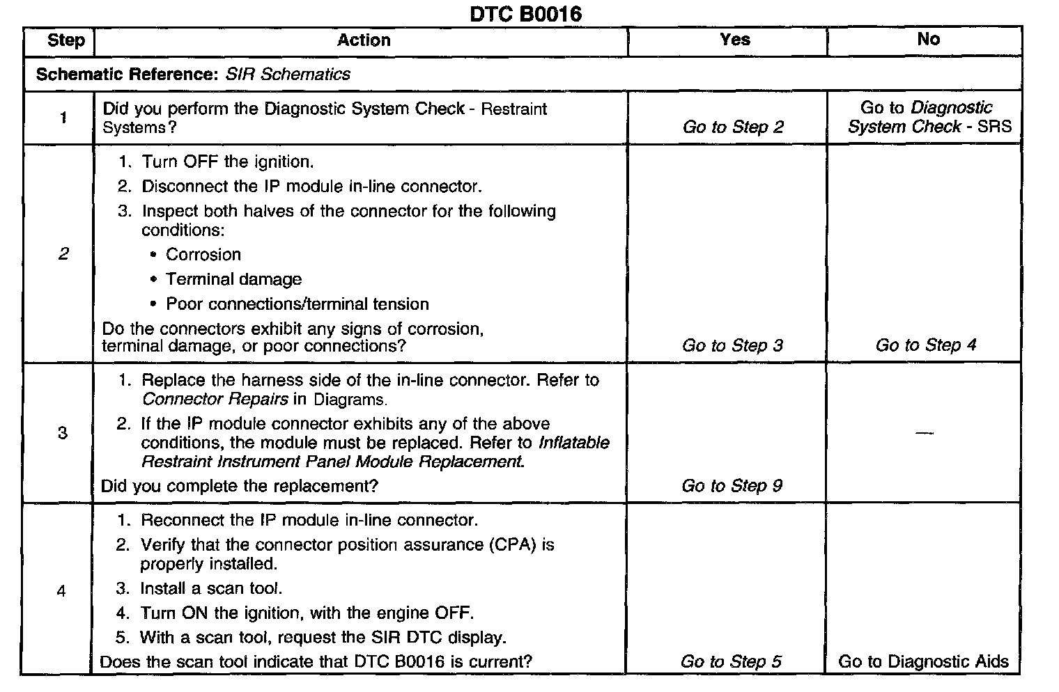 The numbers below refer to the step numbers on the diagnostic table.