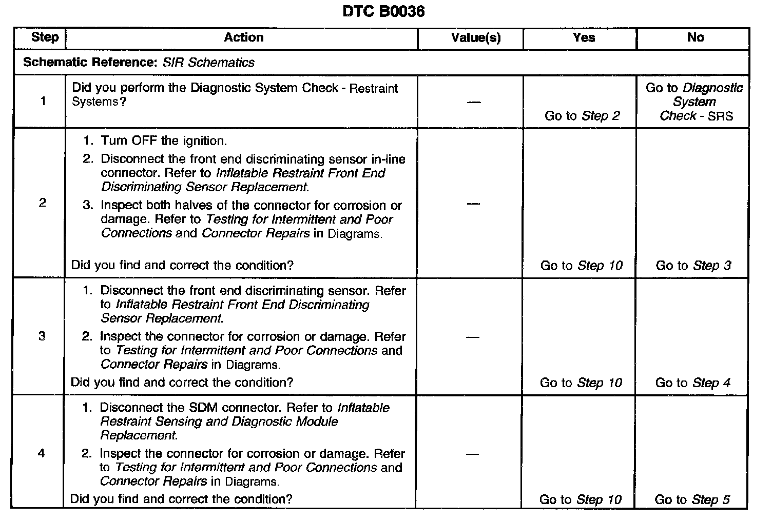 The numbers below refer to the step numbers on the diagnostic table: