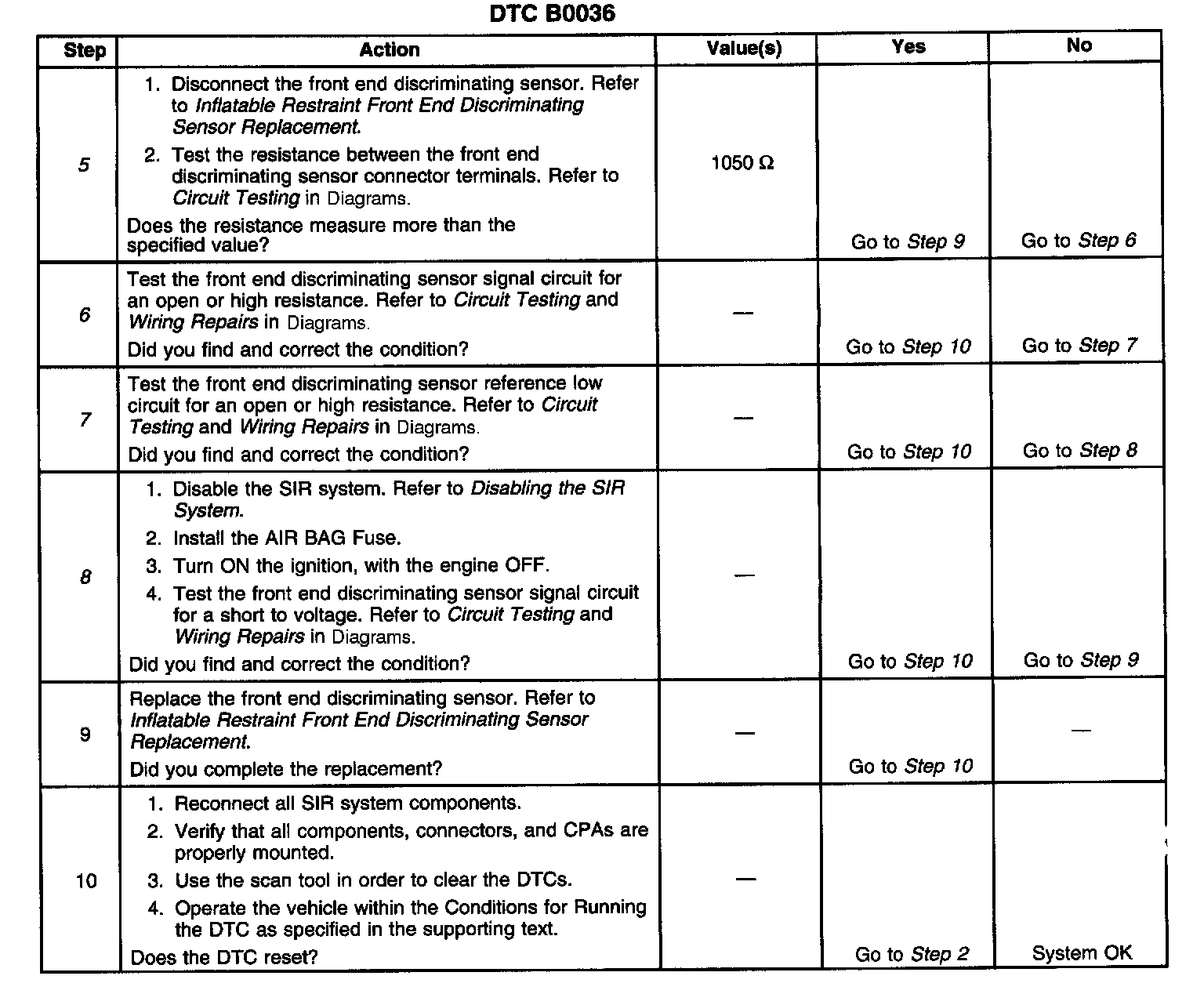 6. Tests for an open or high resistance in the front end discriminating sensor signal circuit.