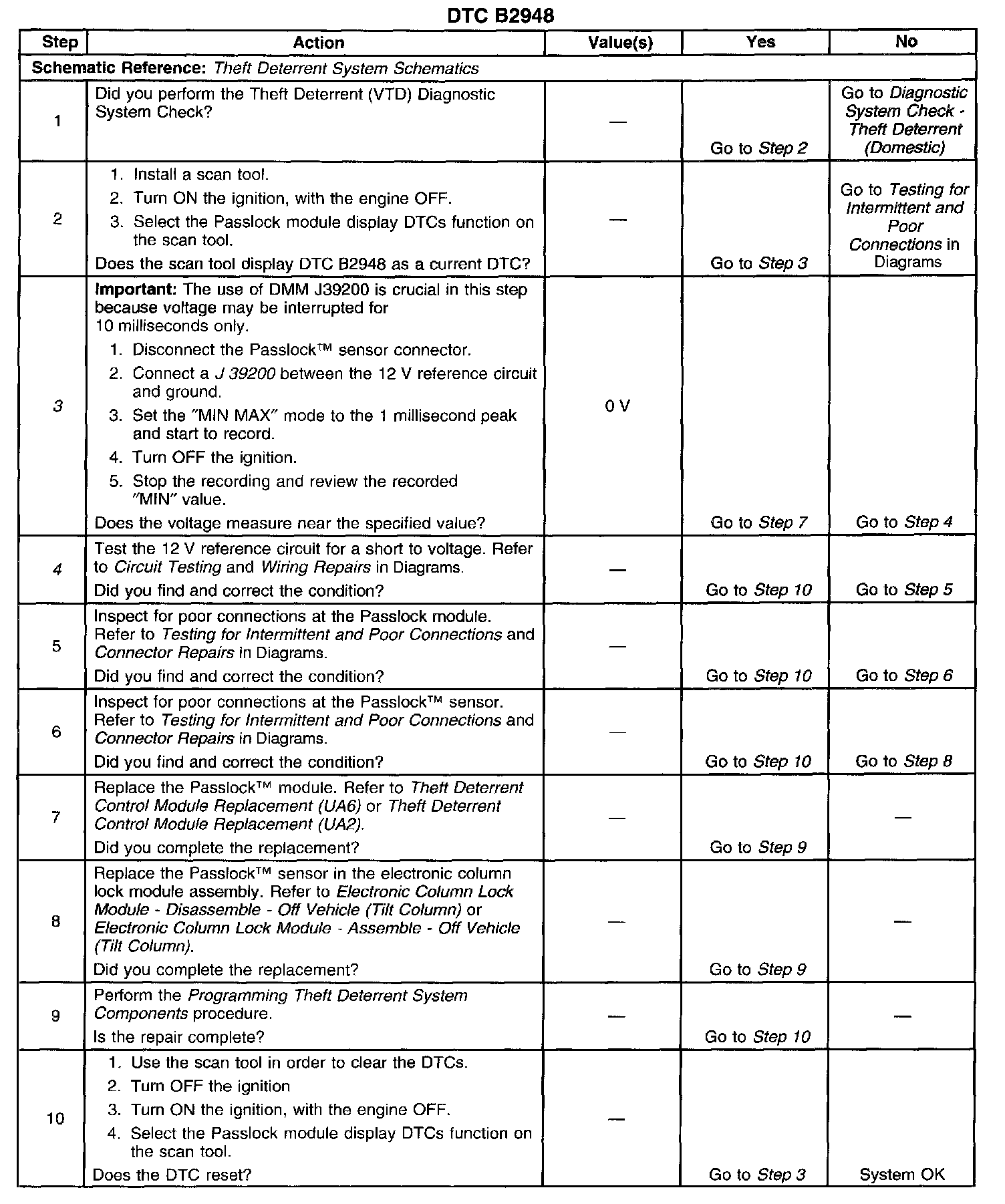 ^ During the 0.1 second shut down of voltage, if the PASSLOCK module senses battery voltage the DTC will set.