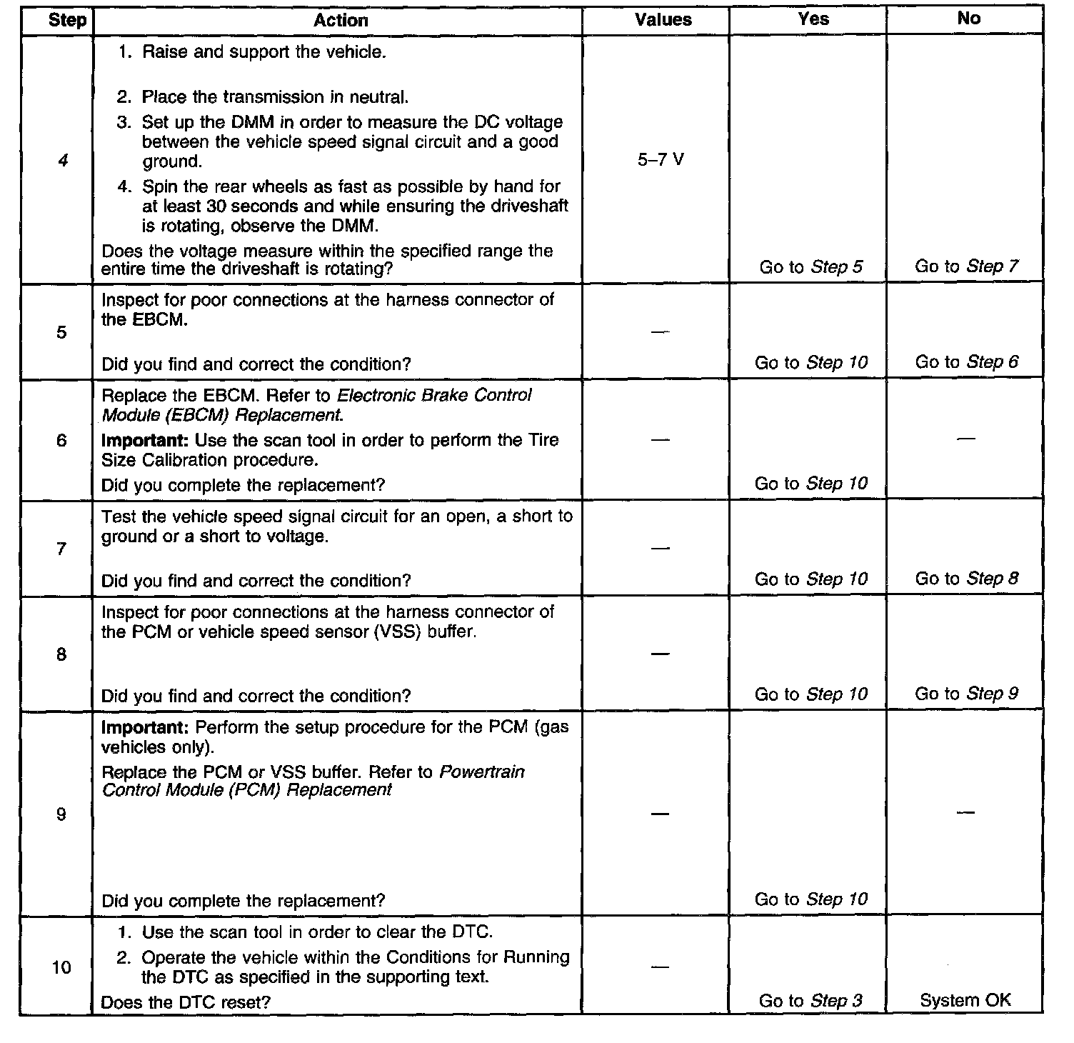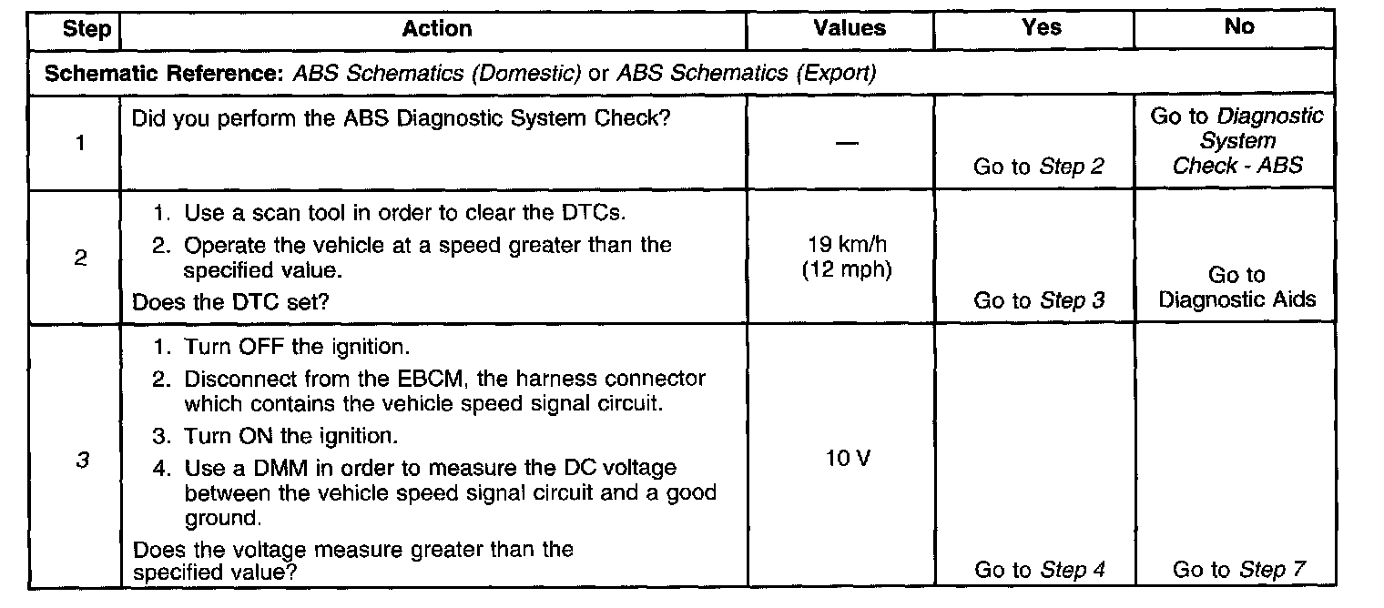 4. This step tests for a missing or erratic vehicle speed signal from the PCM or VSSB. An assistant may be required in order to perform this test.