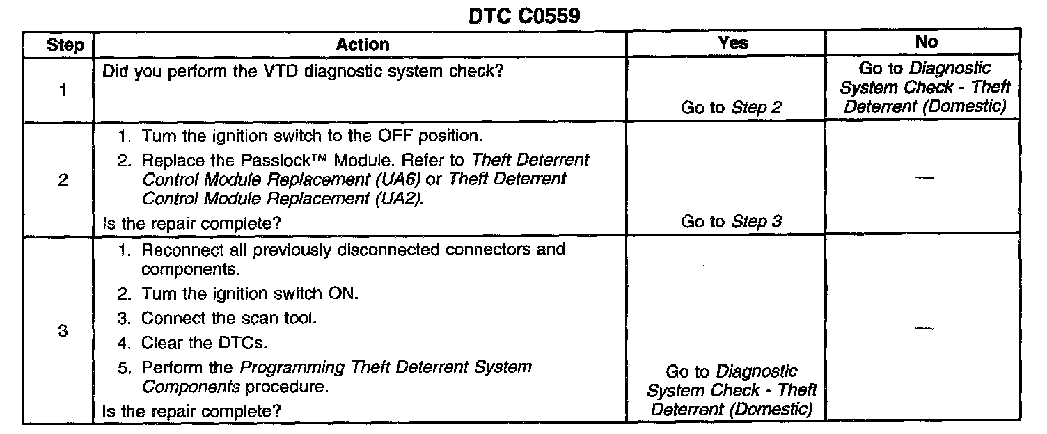 The memory portion of the PASSLOCK(TM) Module is not replaceable. If DTC C0559 is set, the PASSLOCK(TM) Module must be replaced.