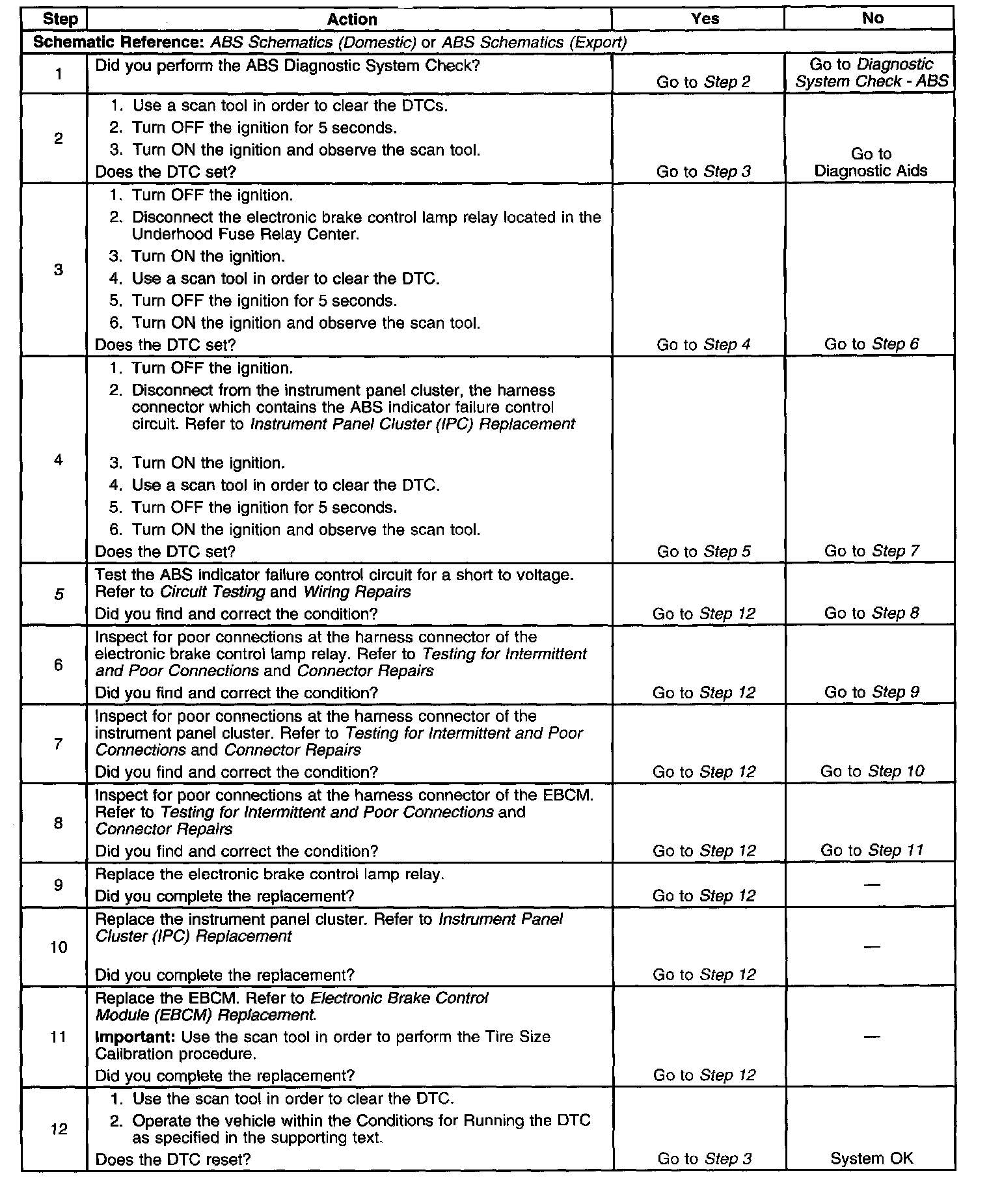 5. Damage may occur to the EBCM, the ABS indicator failure control circuit and the ABS indicator lamp relay if the ABS indicator failure control circuit is shorted to voltage.