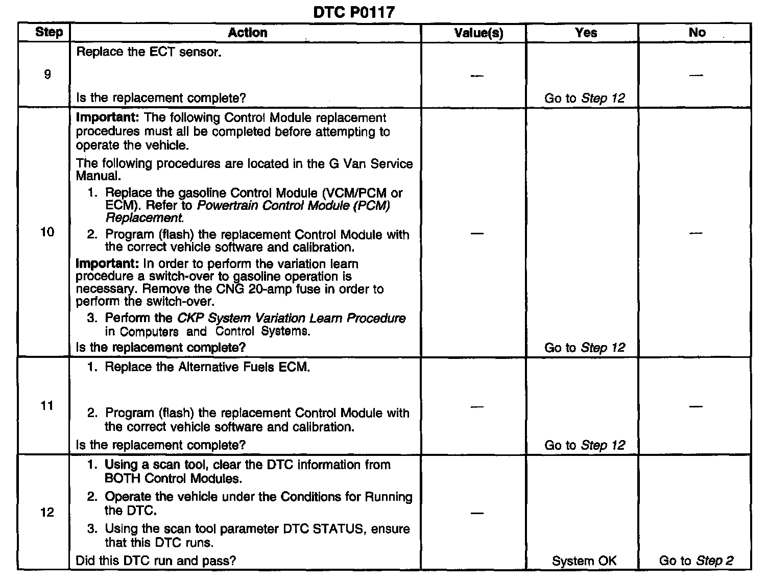 ^ The Alternative Fuels ECM will illuminate the MIL and store the DTC as History after 2 consecutive drive trips that the diagnostic runs and fails.