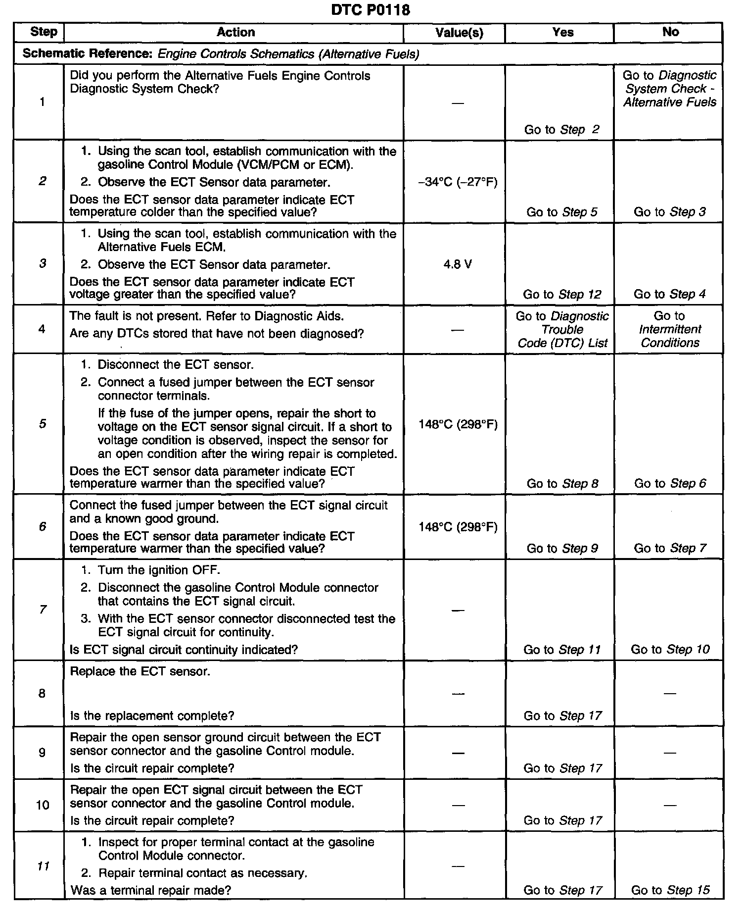5. This step determines if the ECT sensor is the open condition.