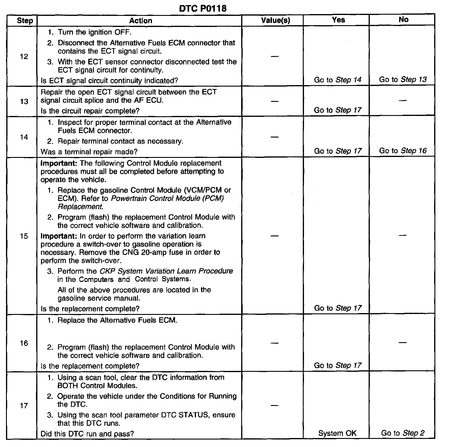 2. This step determines if the failure condition affects the gasoline Control module.