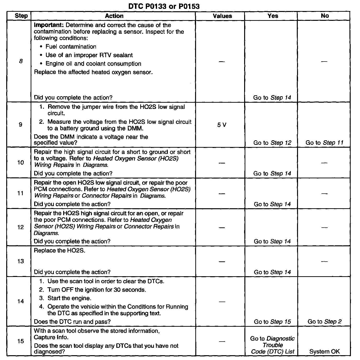 3. When DTCs P0133 and P0153 are set at the same time, fuel contamination is likely.