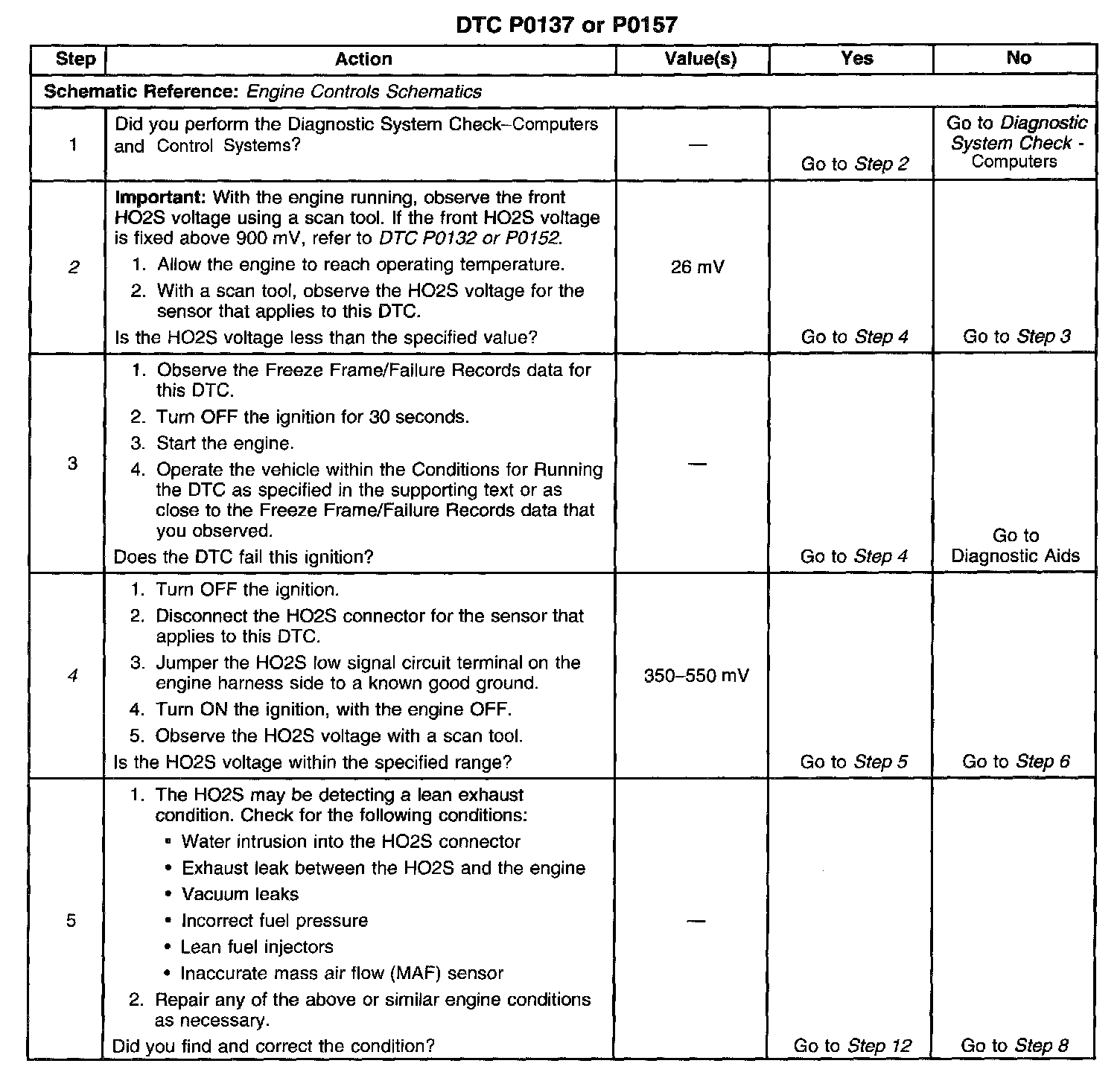 ^ Check for exhaust leaks. An exhaust leak near the HO2S can cause a lean condition. Refer to Exhaust Leakage in Exhaust System. Exhaust Leakage