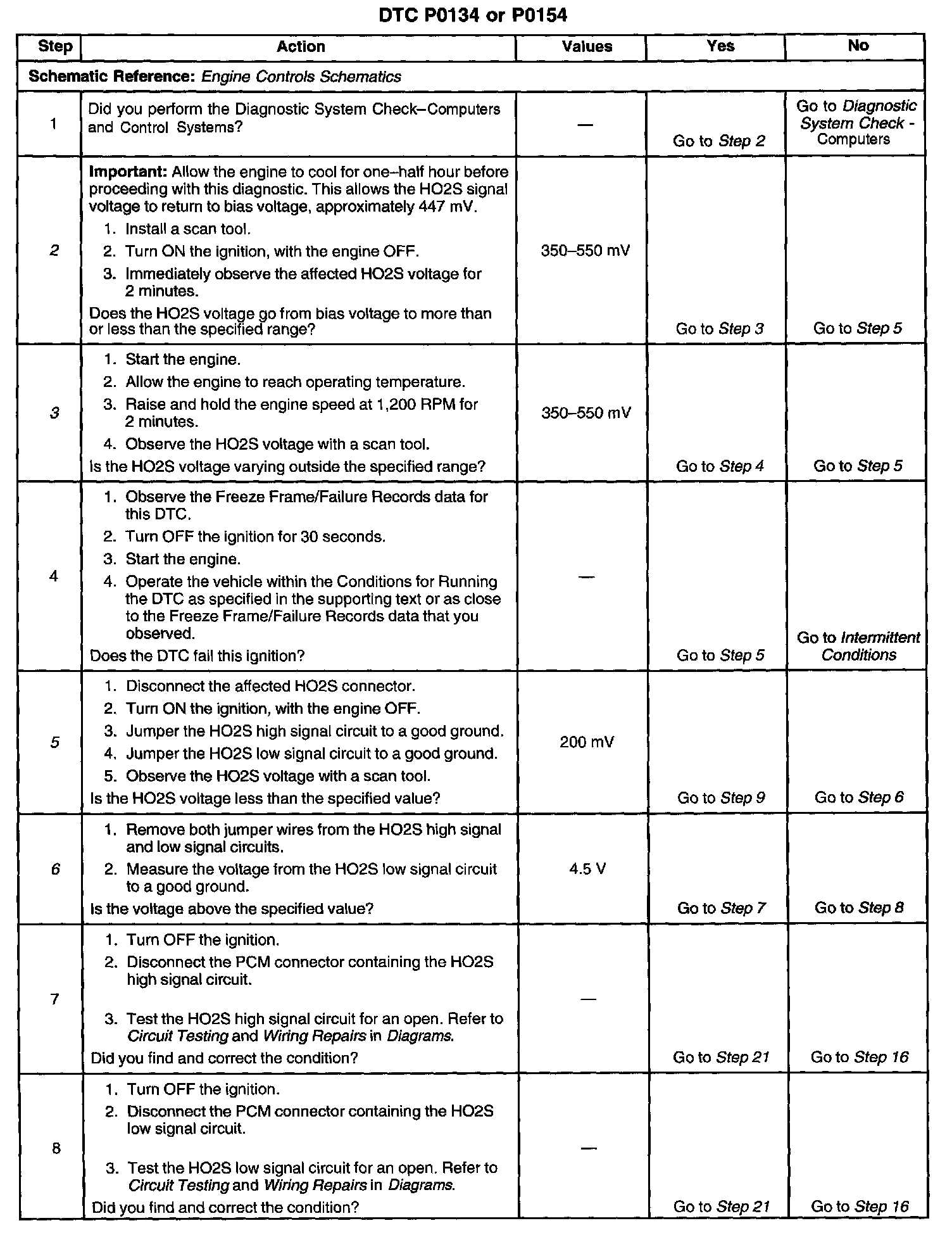 3. If the HO2S voltage is varying outside the specified range, the condition is not present.