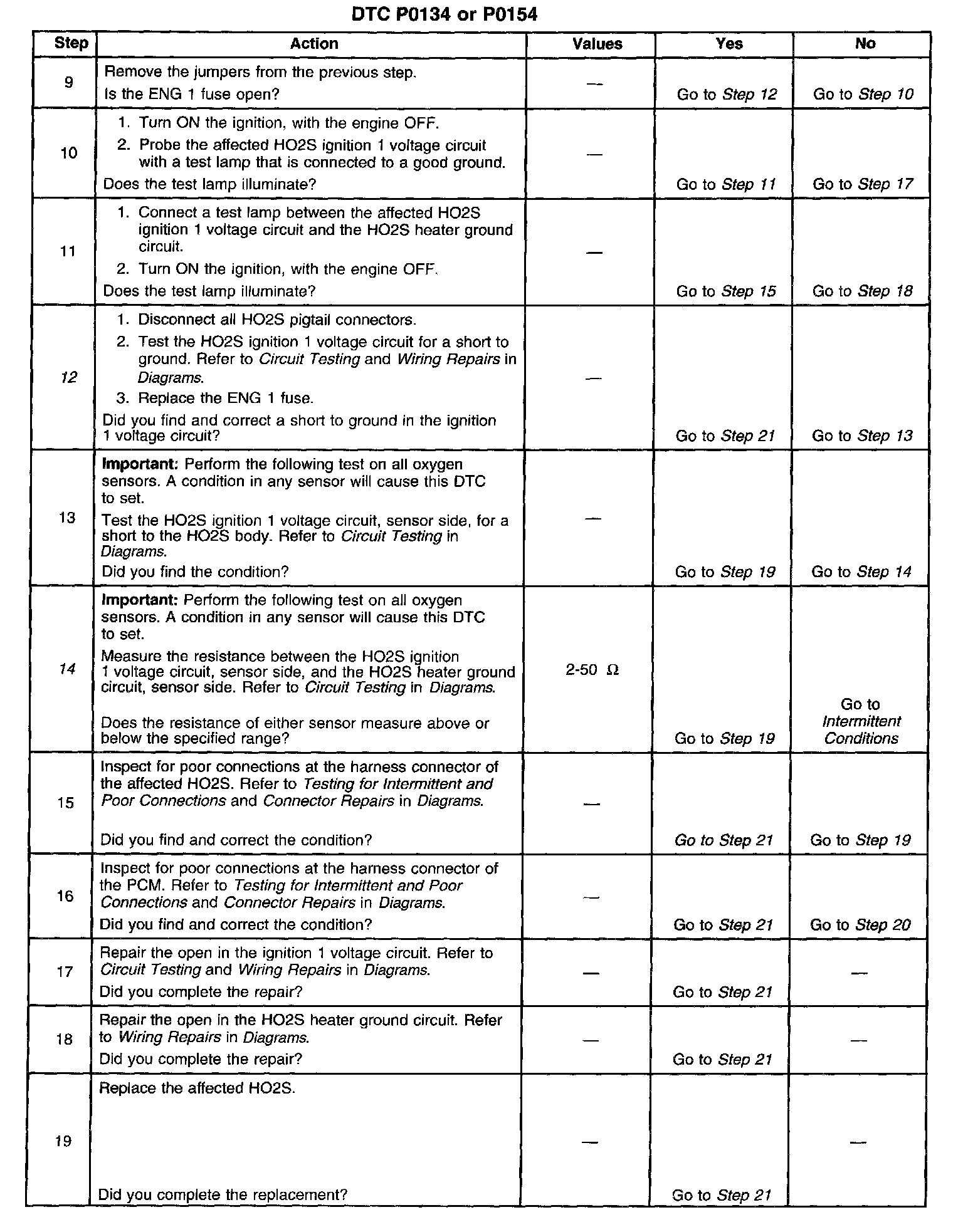 The numbers below refer to the step numbers on the diagnostic table.