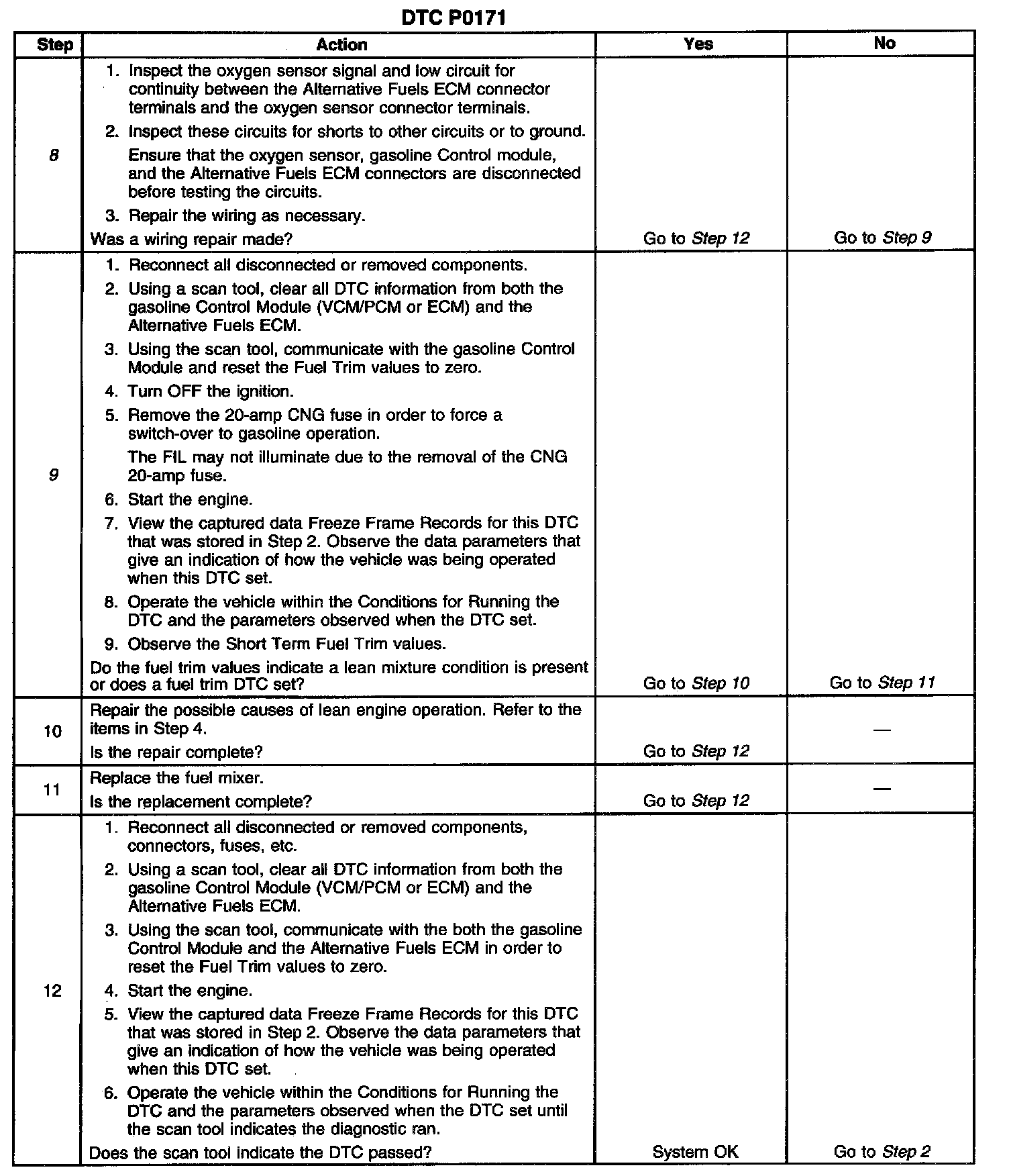 9. This step determines if a base engine concern is causing the lean condition or if the lean condition is only present when operating on CNG.