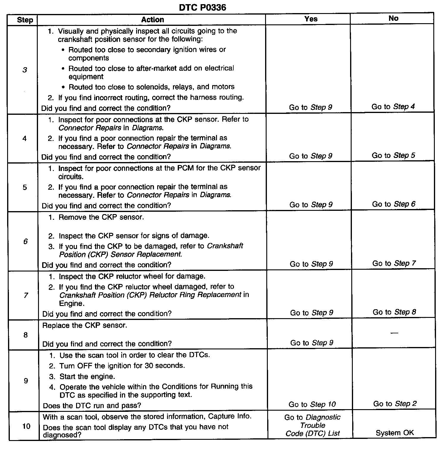 ^ Excess crankshaft end play will cause the CKP sensor reluctor wheel to move out of alignment with the CKP sensor. This could result in any one of the following: