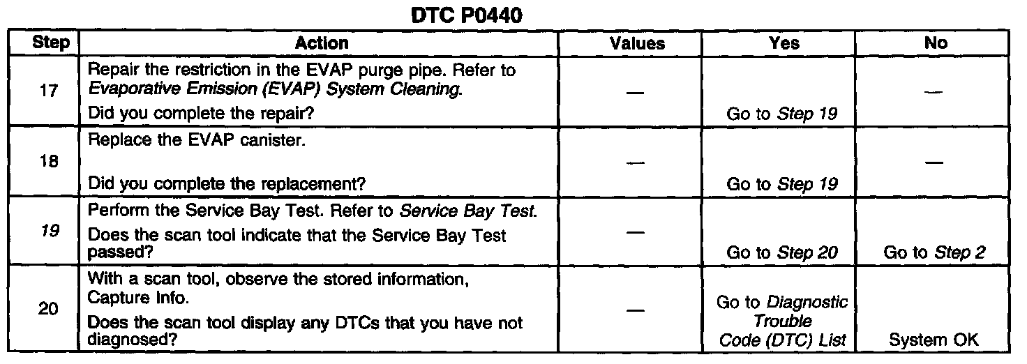 ^ A temporary blockage in the EVAP canister purge valve, purge pipe or EVAP canister could cause an intermittent condition. To repair a blockage in the EVAP system refer to Evaporative Emission (EVAP) System Cleaning. Service and Repair