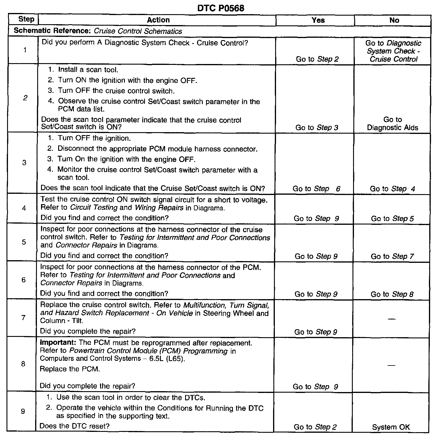 ^ Inspect for a set/coast switch stuck in the engaged position or the signal circuit is shorted to voltage.