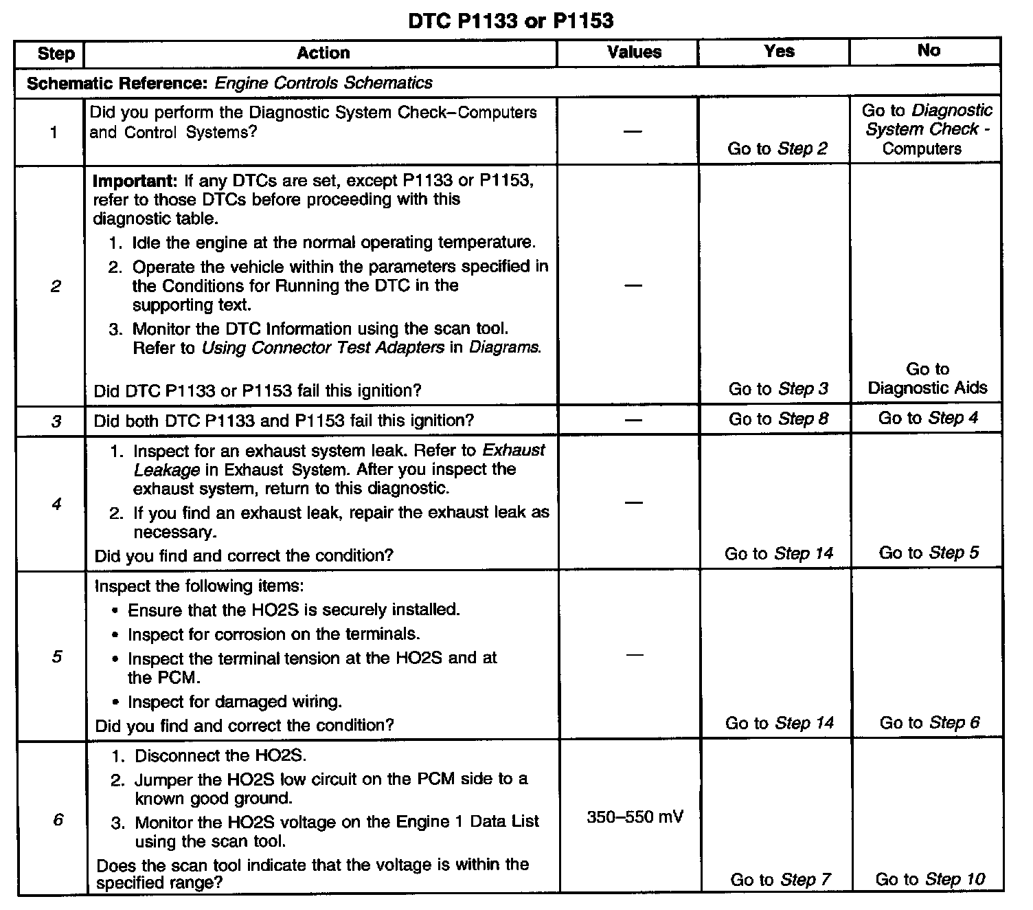CIRCUIT DESCRIPTIONThe Powertrain Control Module (PCM) monitors the Heated Oxygen Sensor (HO2S) activity for 100 seconds. During this monitoring period, the PCM counts the number of times that the HO2S switches from rich to lean, and from lean to rich. A DTC P1133 or P1153 sets when the PCM determines that the HO2S did not switch enough times.