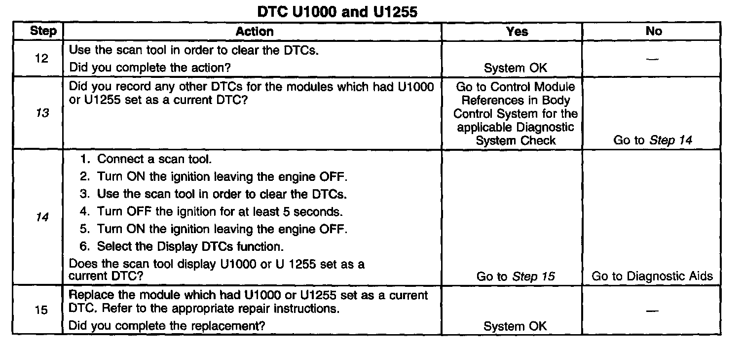 2. The modules which is not communicating is the likely cause of U1000 or U1255 being set. The following modules communicate on the class 2 circuit: